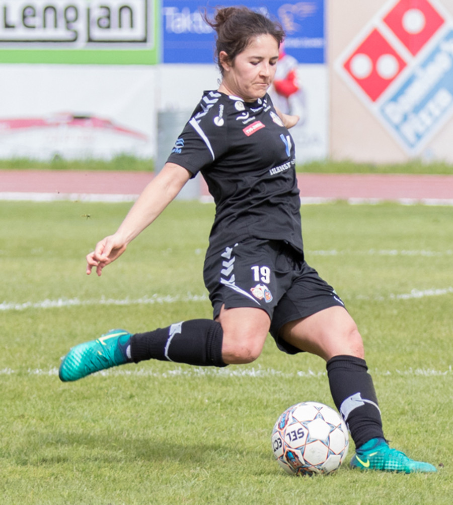 Natalia með skot hérna af 25 metrunum sem Adelaide ver. Hún er ófeimin við að reyna sú mexíkanska.