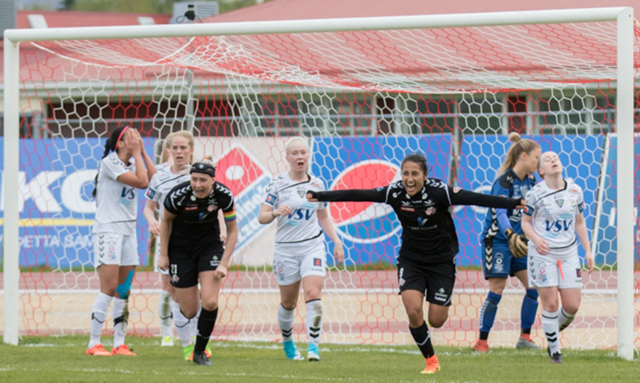 MAAAAAAAAAAARRRRRRRRRRRRRKKKKK!!!! HEIMAKONUR KOMNAR AFTUR YFIR!!! Natalia með frábæra hornspyrnu á fjærstöngina sem Sandra leggur fallega í hornið! Stórt spurningarmerki við dekkninguna á Söndru þó.