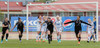 Sandra María Jessen er að hita duglega upp hér í hálfleiknum. Við hljótum að sjá hana fljótlega