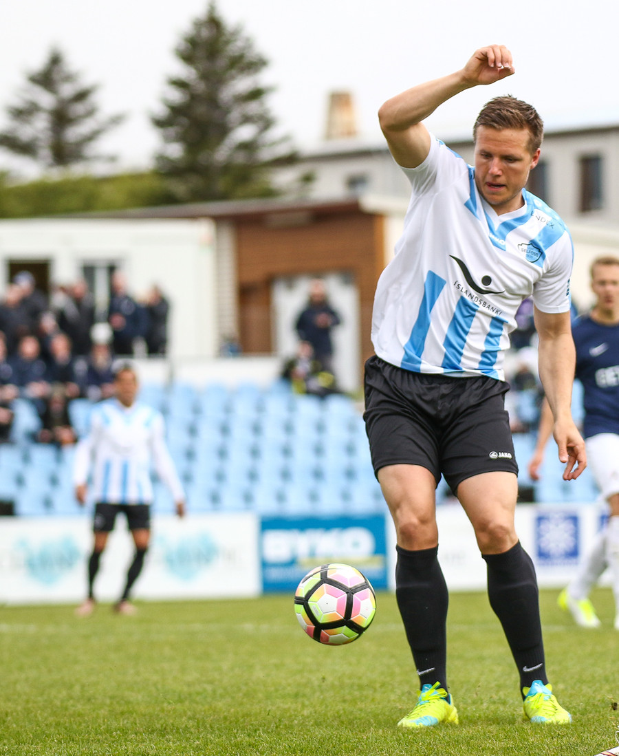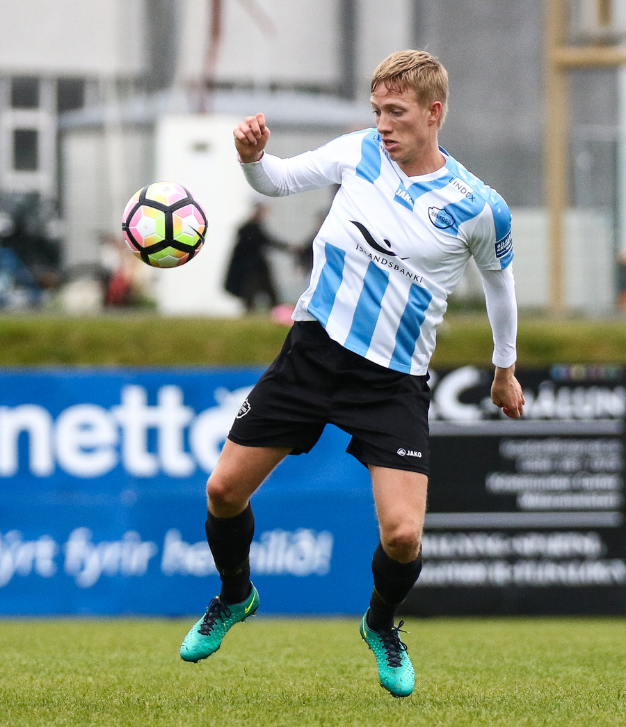 Heimamenn með ágæta sókn upp vinstri kantinn en skalli Adam Árna laus og framhjá markinu.