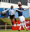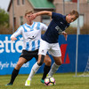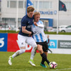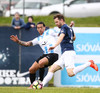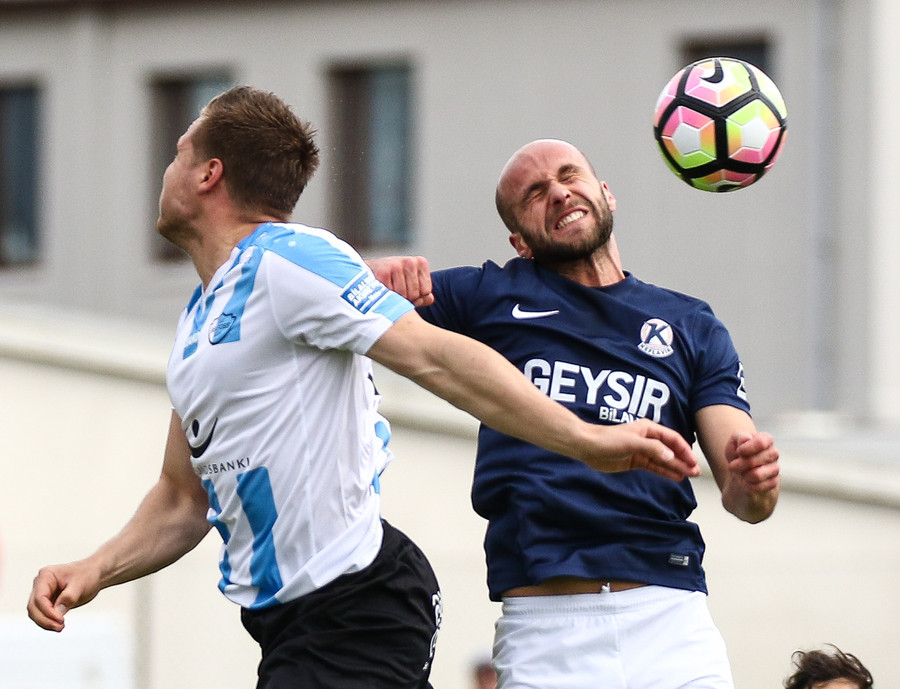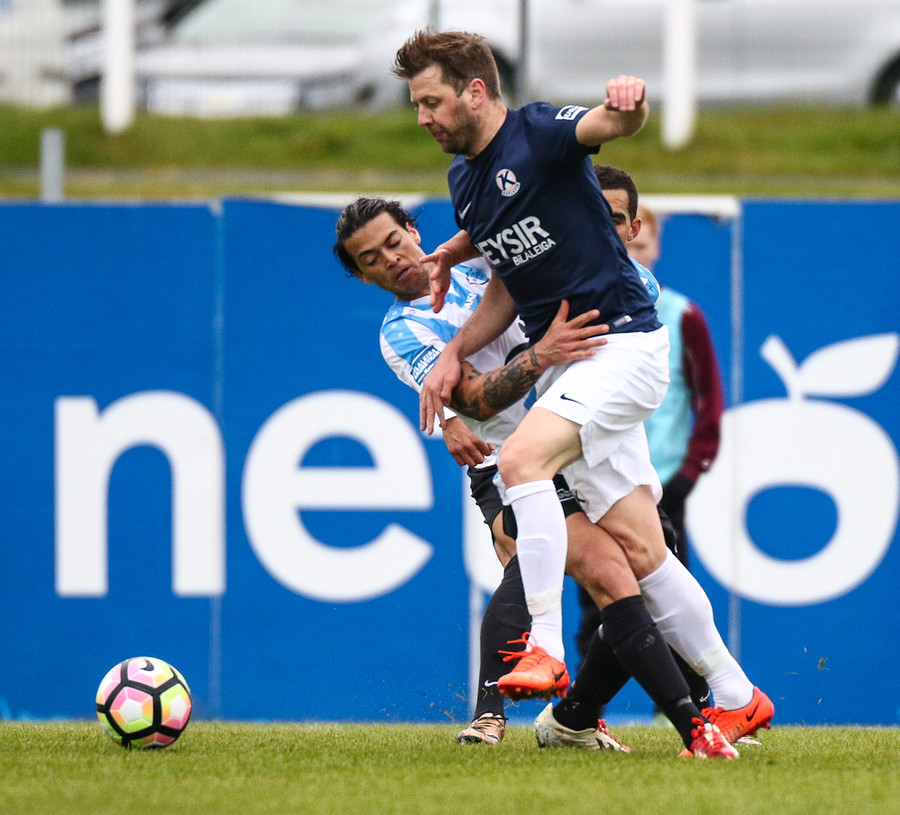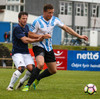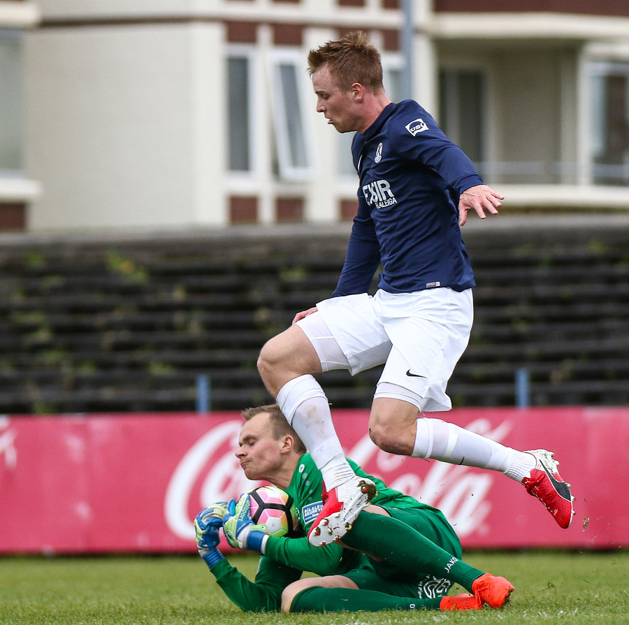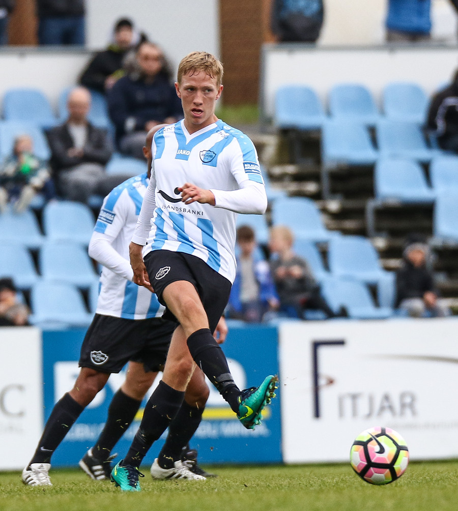 Jeppe hansen að láta Óttar virkilega hafa fyrir hlutunum og nálægt því að skora fyrsta mark leiksins. Greinilegt að dagskipunin er að Jeppe eigi að sækja á Óttar frekar en Andy og spurning hvort Óttar stenst pressuna lengi