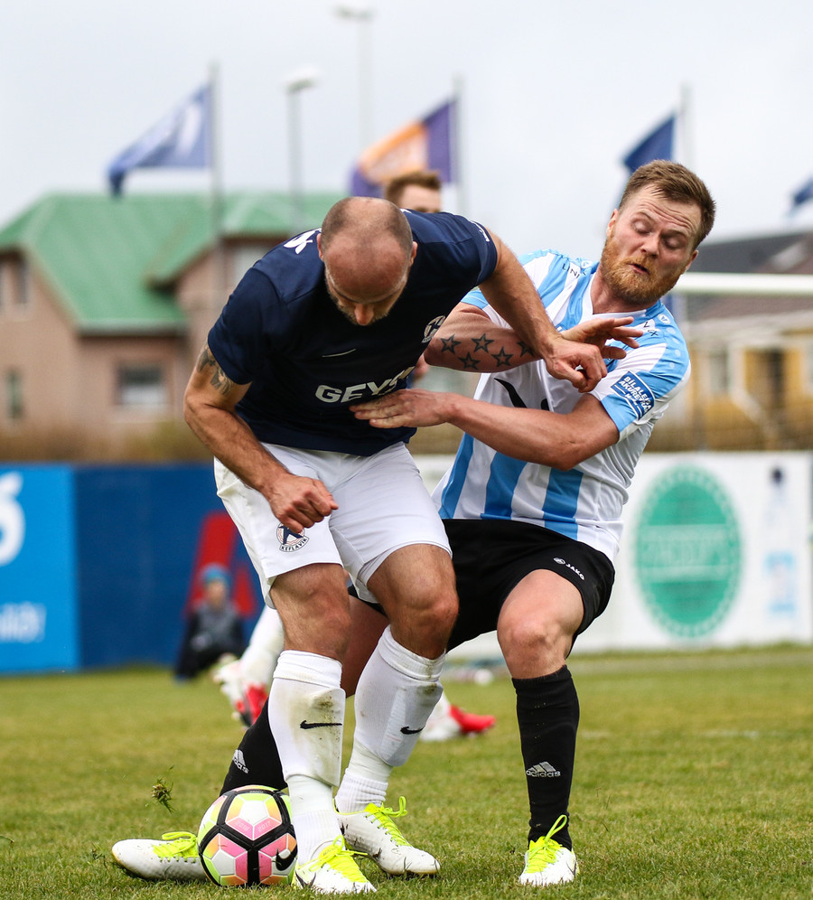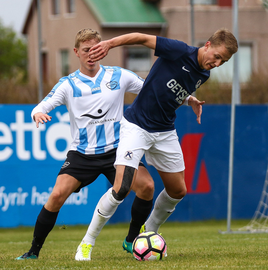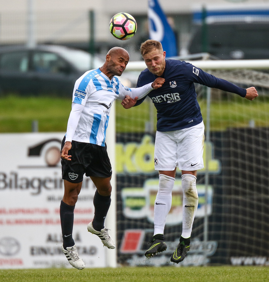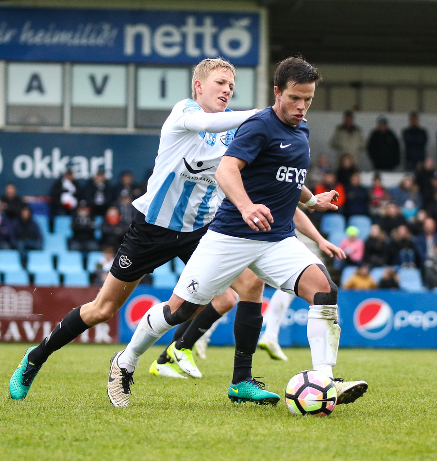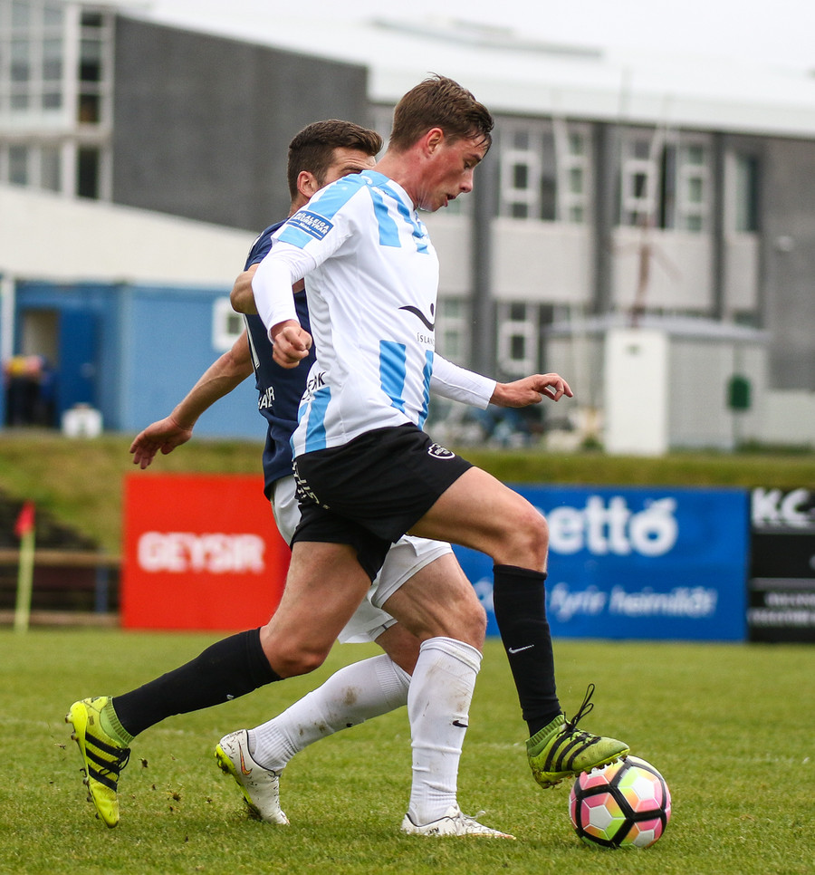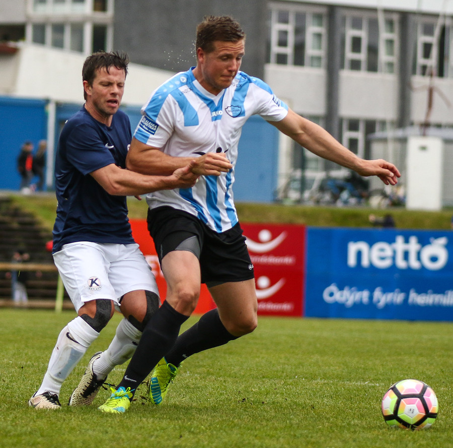 Það er róleft yfir þessu hér á Nettóvellinum þó baráttan sé til staðar. Guðjón Orri haltrar enn um teiginn en virðist ætla að reyna að halda áfram.