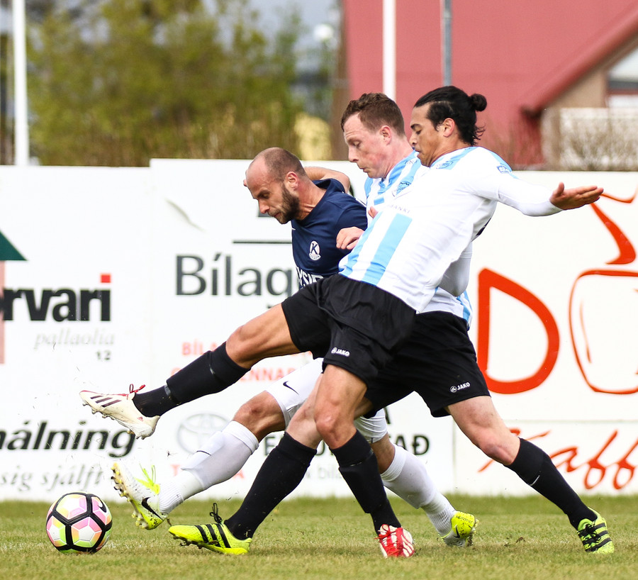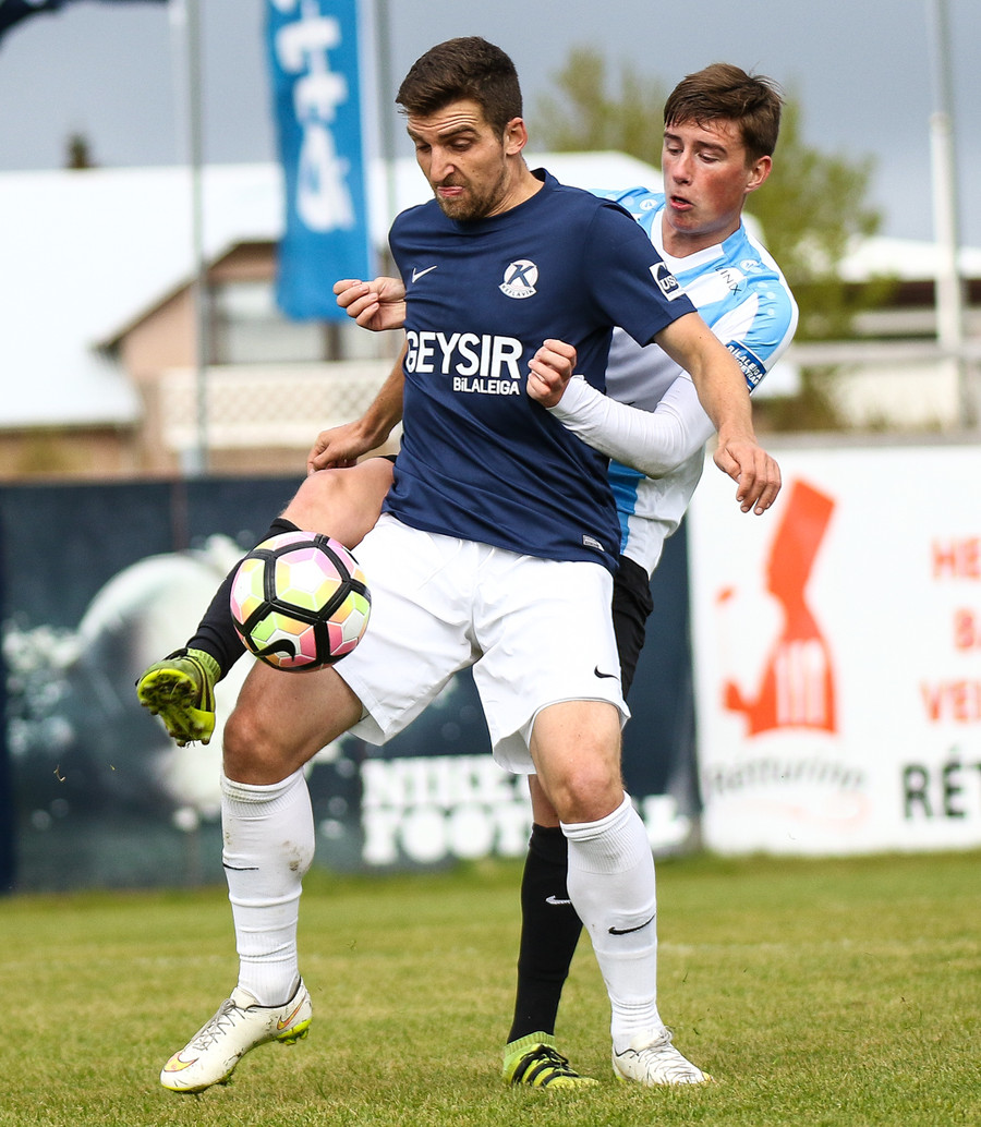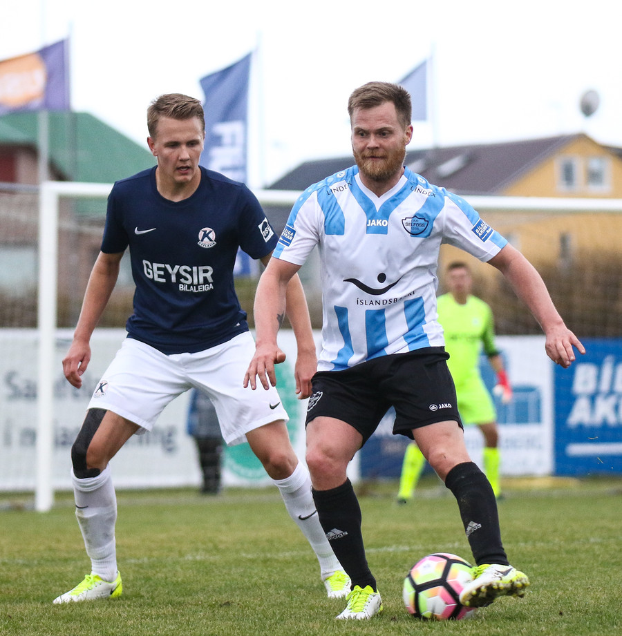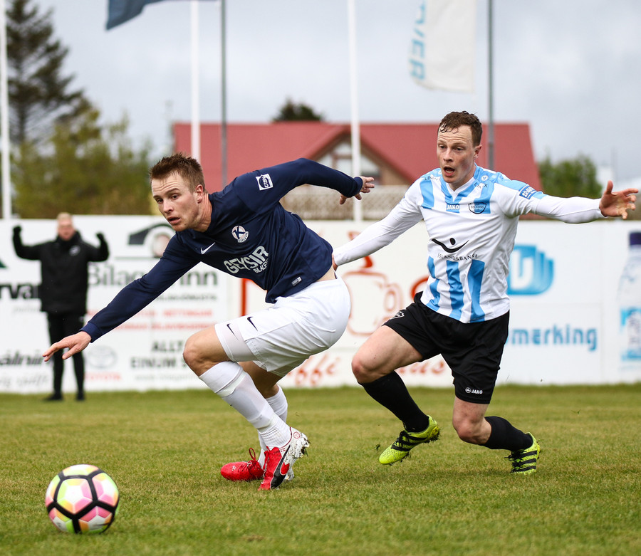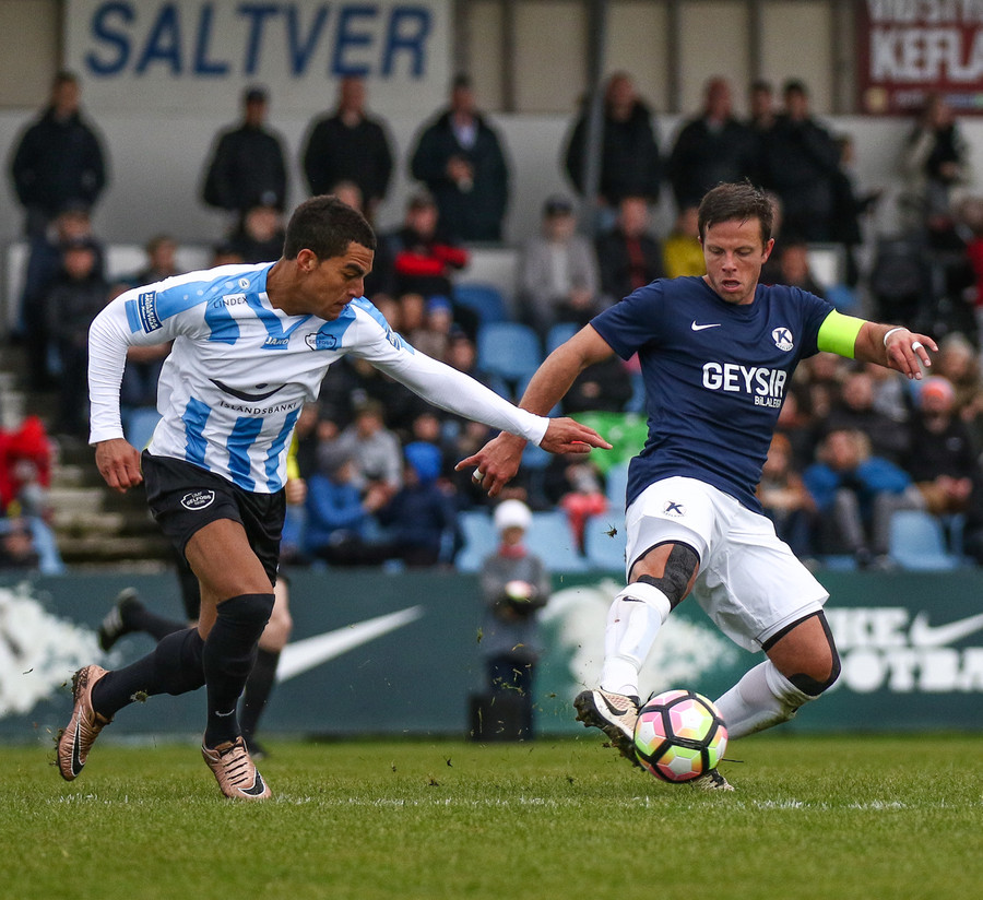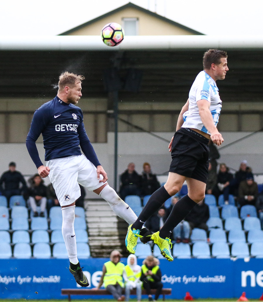 Það er róleft yfir þessu hér á Nettóvellinum þó baráttan sé til staðar. Guðjón Orri haltrar enn um teiginn en virðist ætla að reyna að halda áfram.