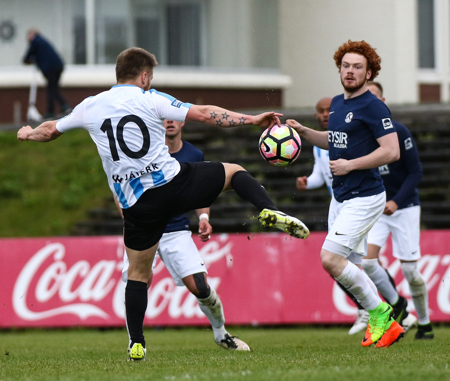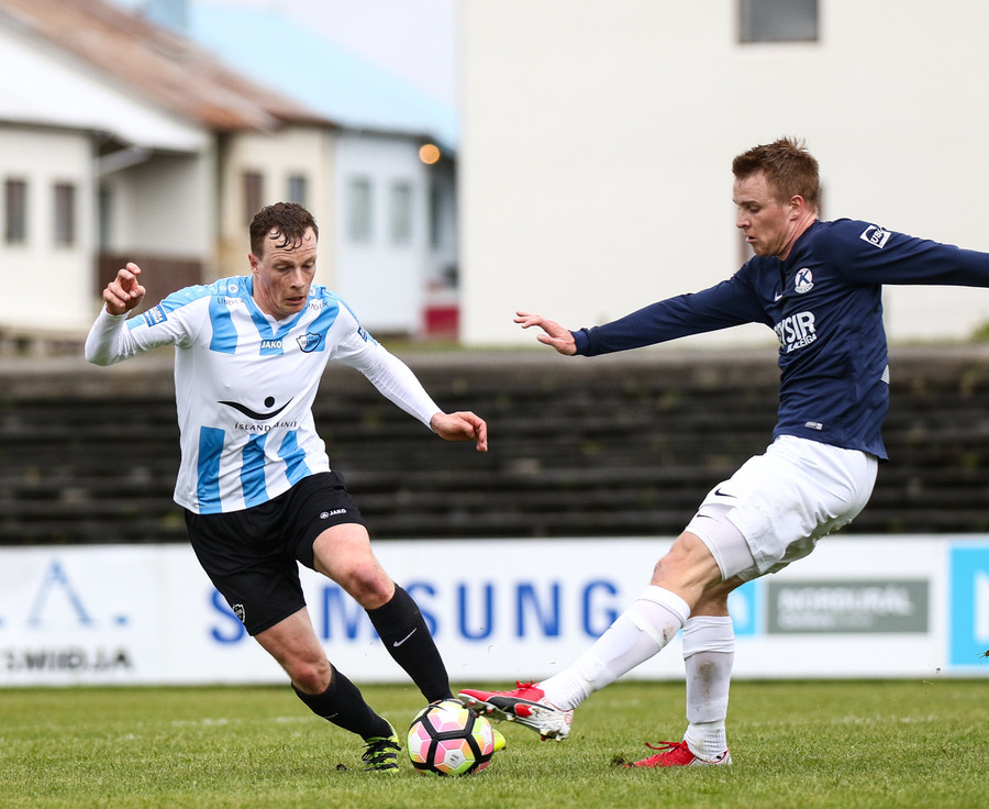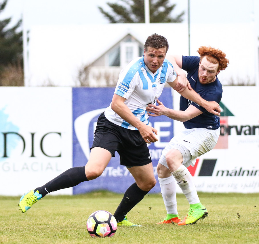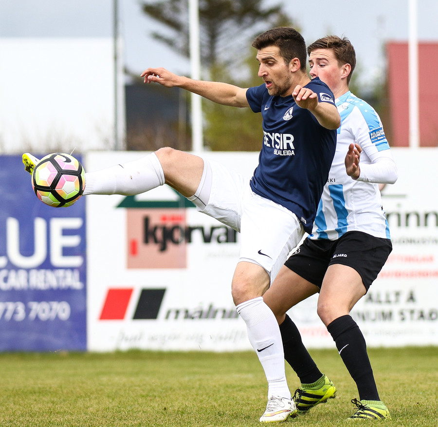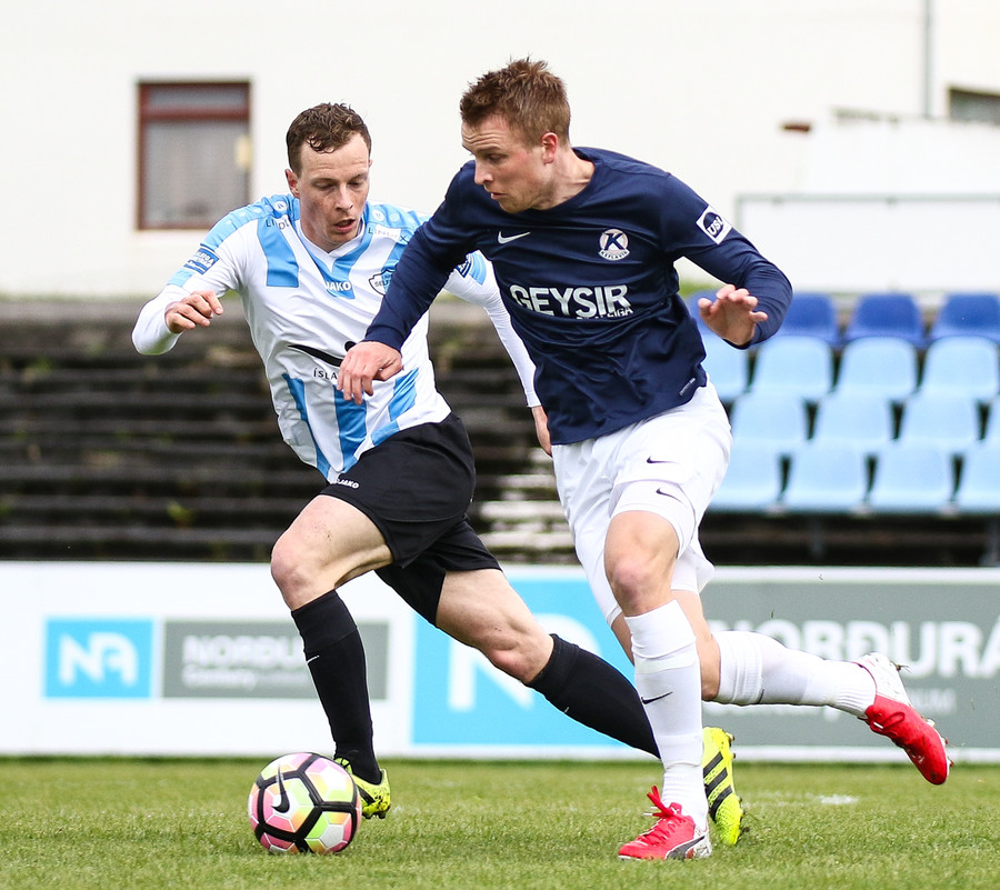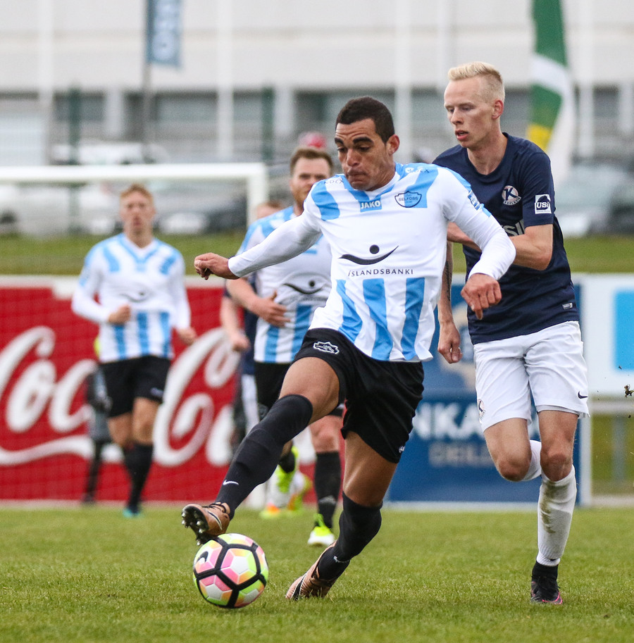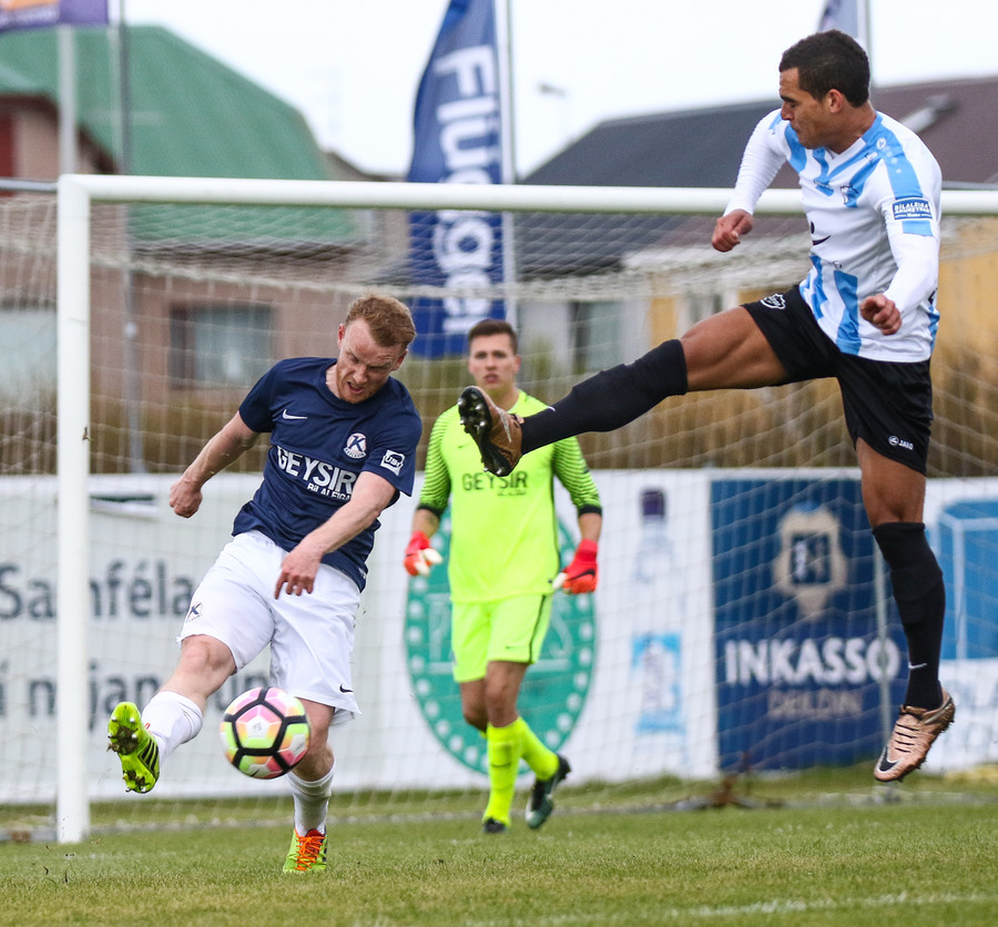 Það er róleft yfir þessu hér á Nettóvellinum þó baráttan sé til staðar. Guðjón Orri haltrar enn um teiginn en virðist ætla að reyna að halda áfram.