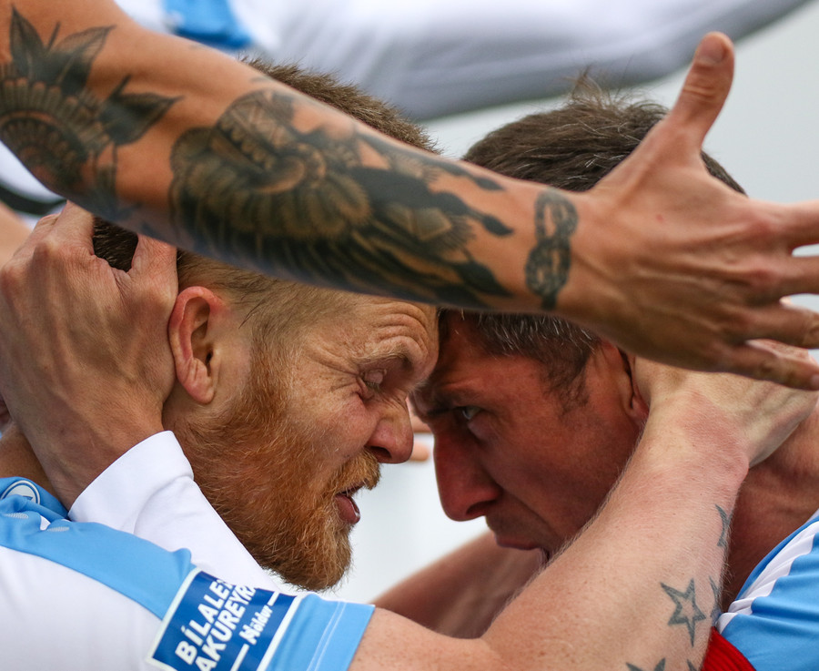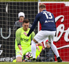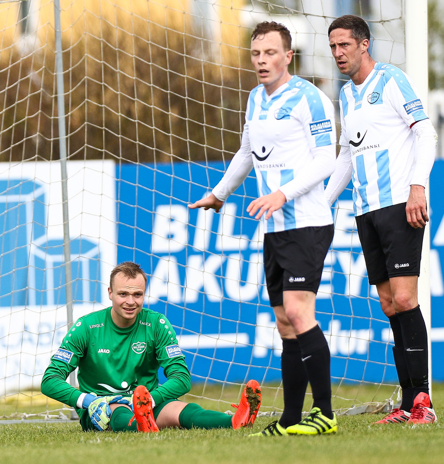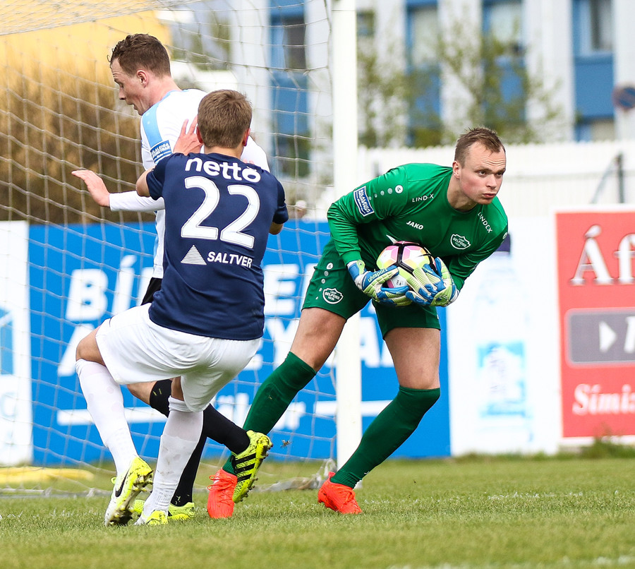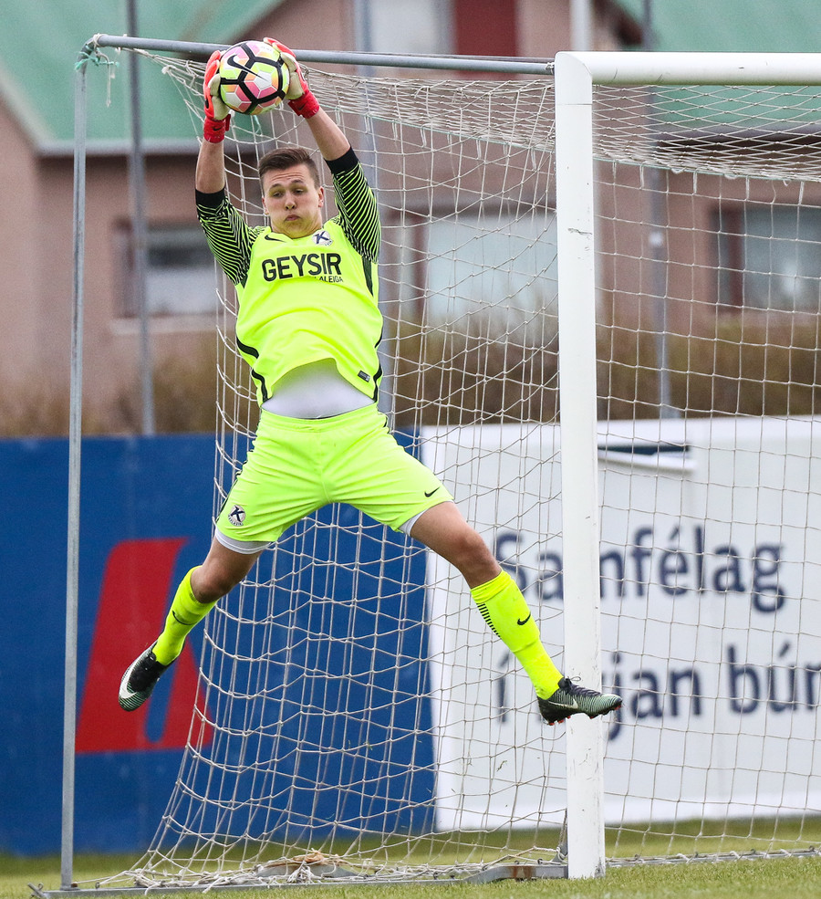Hólmar fylgdi vel eftir þegar Guðjón varði frá Jeppe.