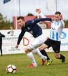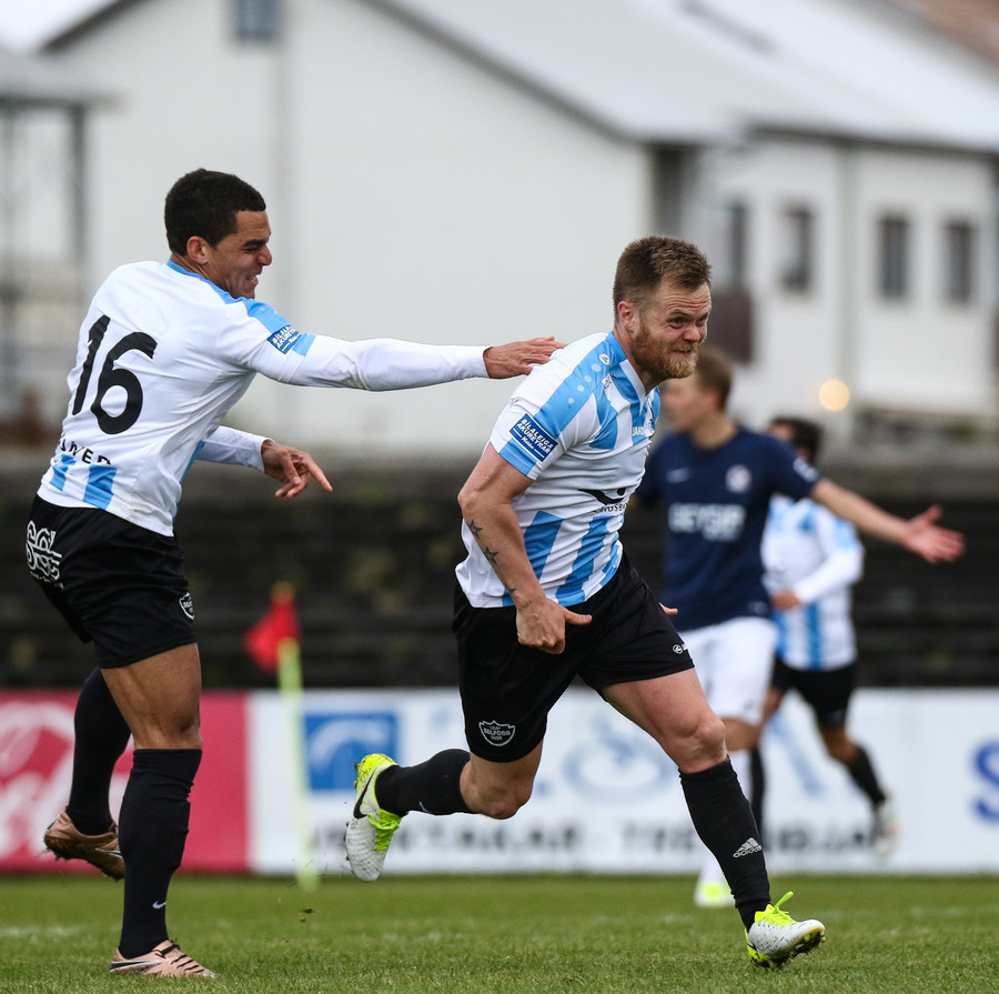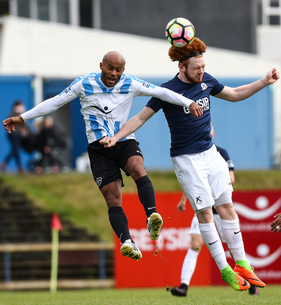 Stungusending innfyrir vörnina og James Mack afgreiddi hana snyrtilega í markið.
