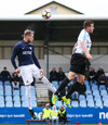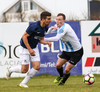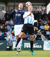 Óttar Guðlaugsson, sem er í miðverðinum með Andy Pew, hér í tómum vandræðum en Keflvíkingar klaufar að nýta sér það ekki betur.