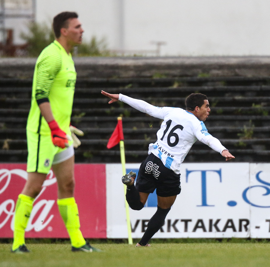 Góð sókn upp hægri vænginn þar sem Elvar Ingi átti fínan sprett, lagði boltann á Alfi sem sendi boltann fyrir markið á Inga Rafn sem skoraði með hnitmiðuðu skoti í hornið nær.