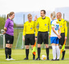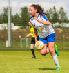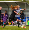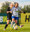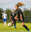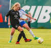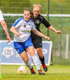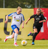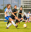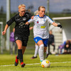 Fyrsta sókn Hamranna. Snædís með fína stungu inn fyrir en Eva Ýr er vel vakandi og er fyrst í boltann.