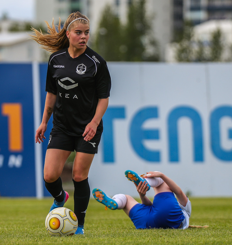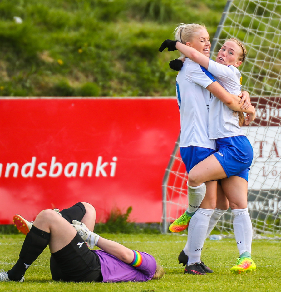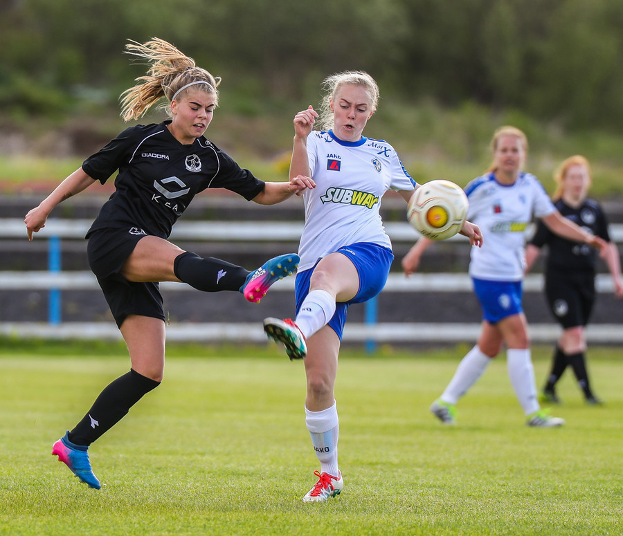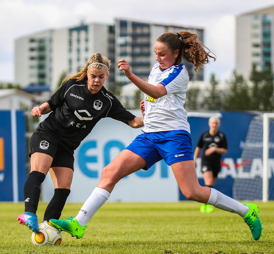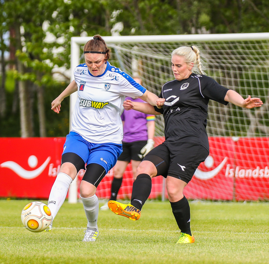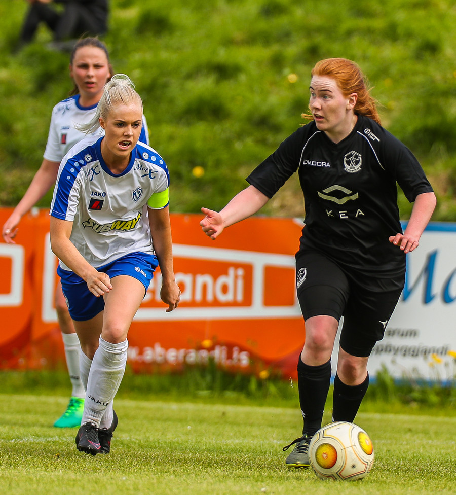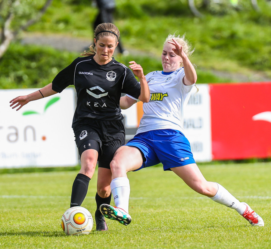 Skemmtileg tilþrif hjá Anítu Björk sem klobbar Björk Nóadóttur og kemst þannig framhjá henni. Fyrirgjöfin sem fylgir í kjölfarið er hinsvegar ekki nógu góð.