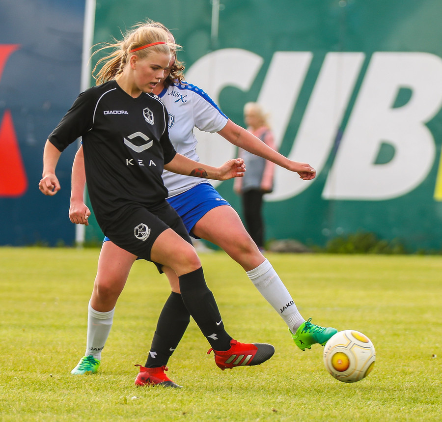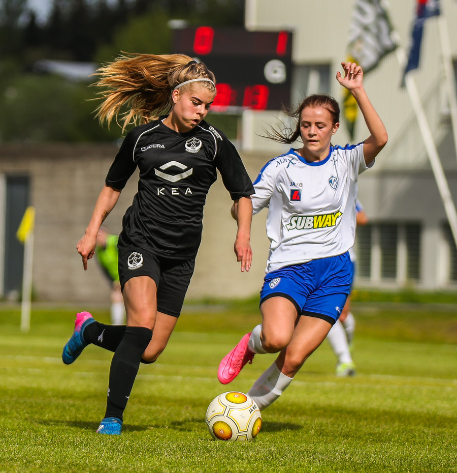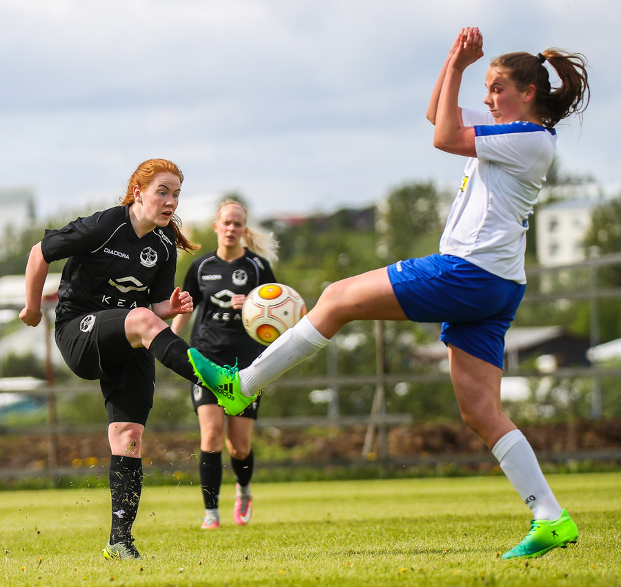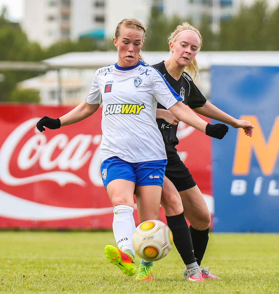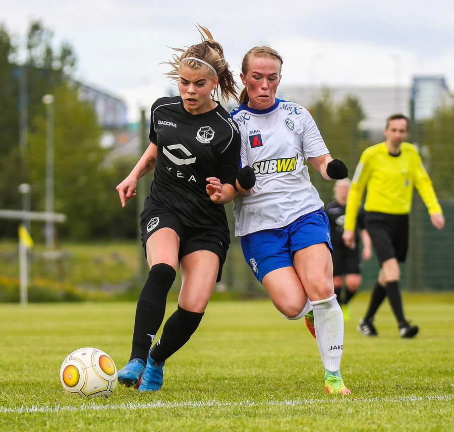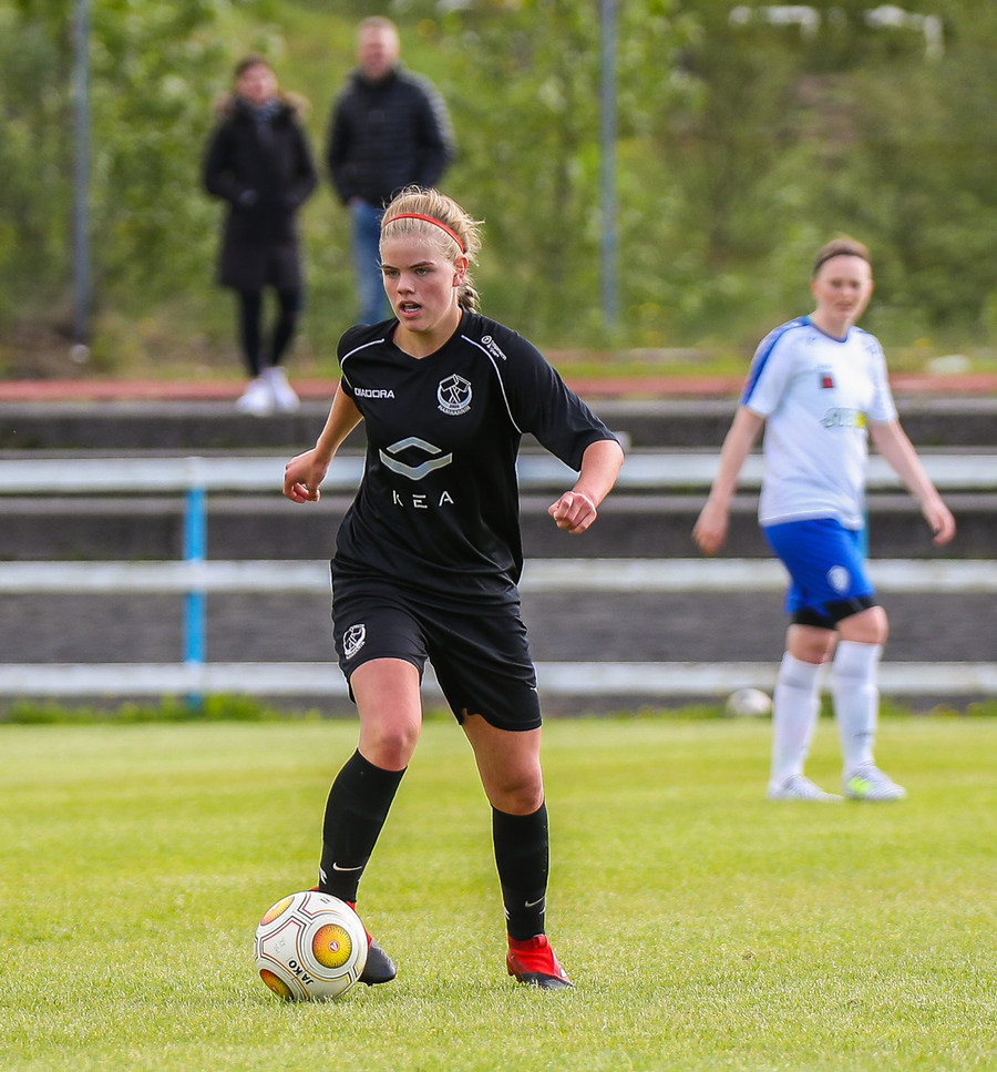 Skemmtileg tilþrif hjá Anítu Björk sem klobbar Björk Nóadóttur og kemst þannig framhjá henni. Fyrirgjöfin sem fylgir í kjölfarið er hinsvegar ekki nógu góð.