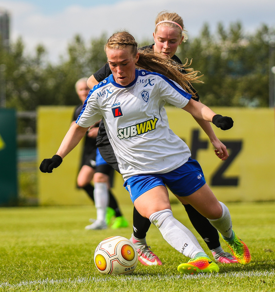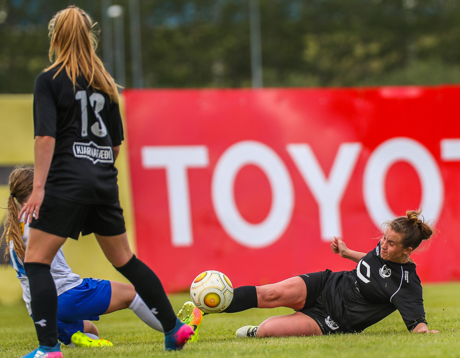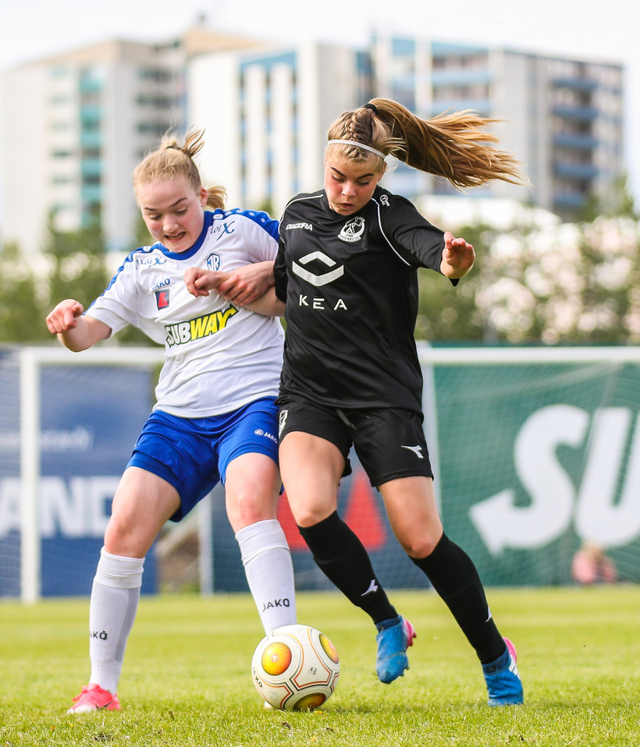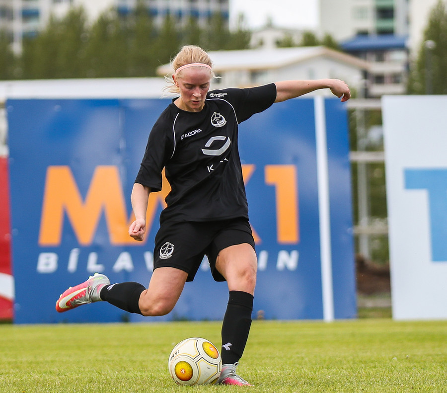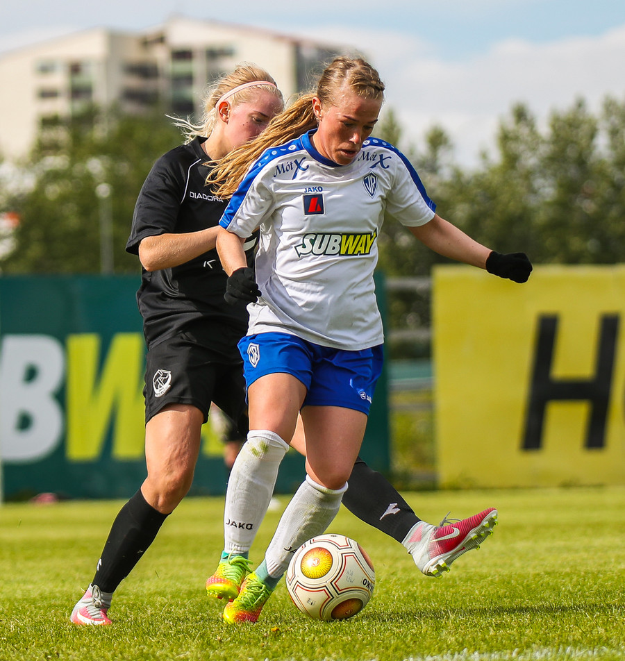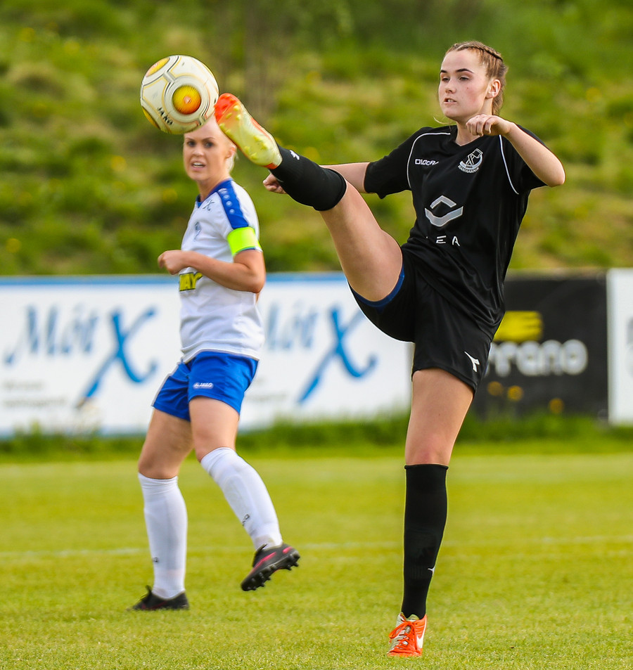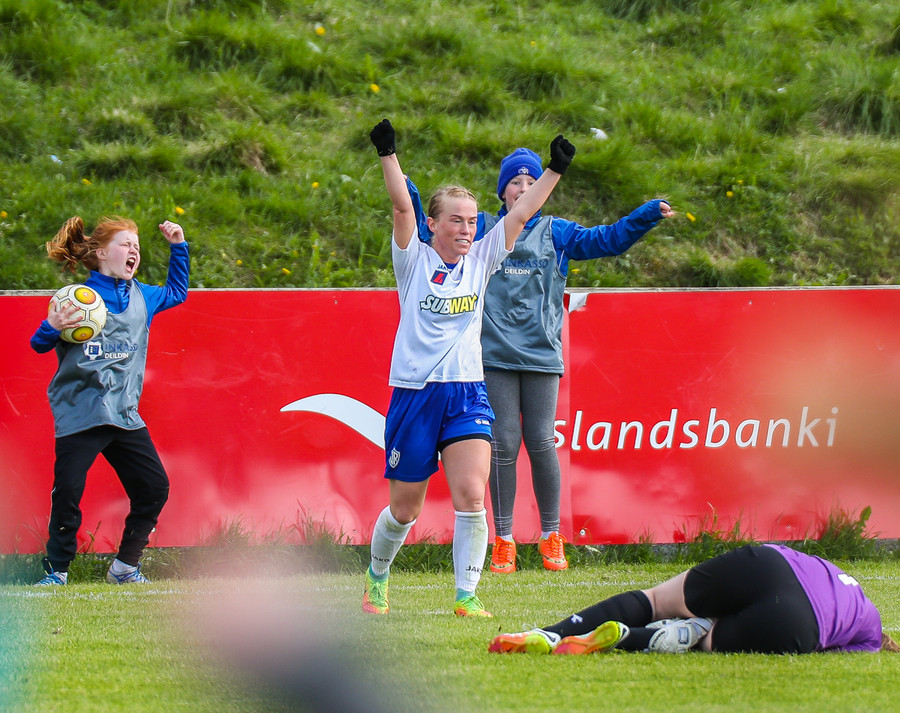 Skemmtileg tilþrif hjá Anítu Björk sem klobbar Björk Nóadóttur og kemst þannig framhjá henni. Fyrirgjöfin sem fylgir í kjölfarið er hinsvegar ekki nógu góð.