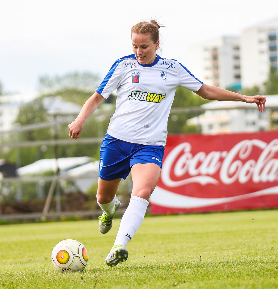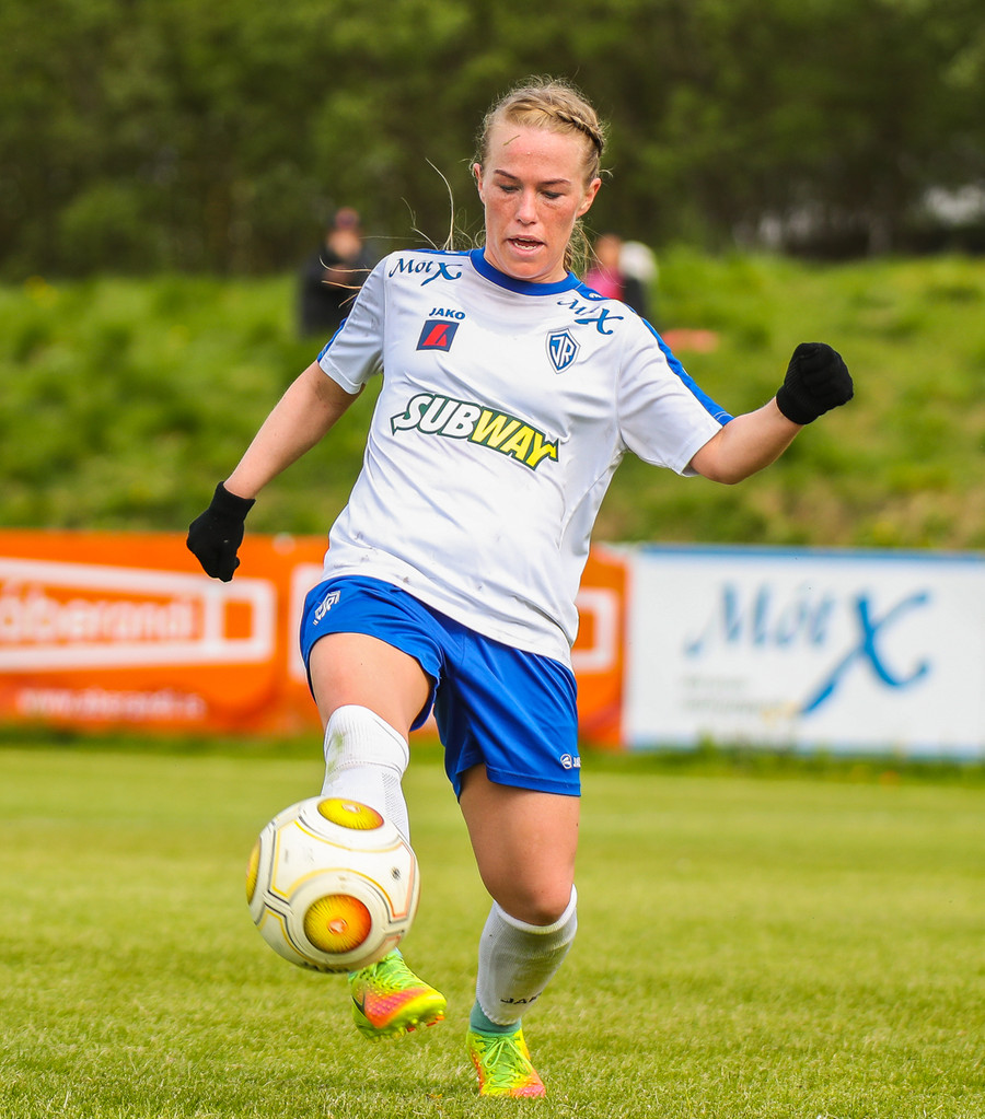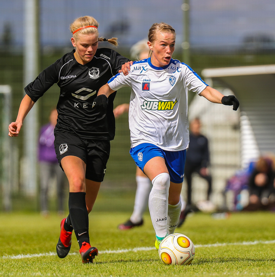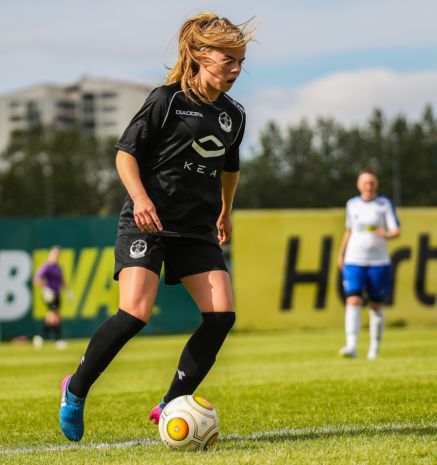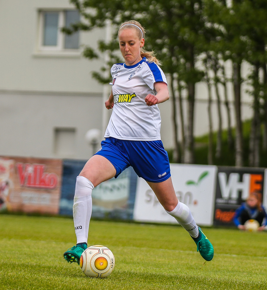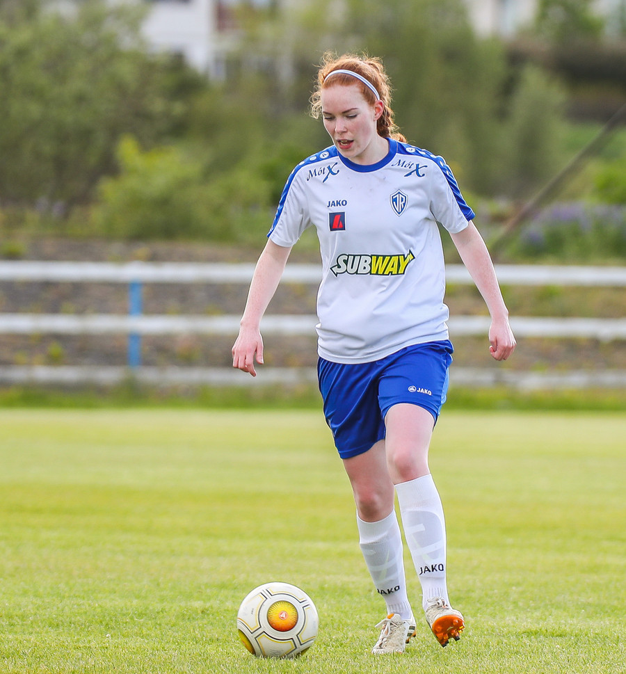 Skemmtileg tilþrif hjá Anítu Björk sem klobbar Björk Nóadóttur og kemst þannig framhjá henni. Fyrirgjöfin sem fylgir í kjölfarið er hinsvegar ekki nógu góð.