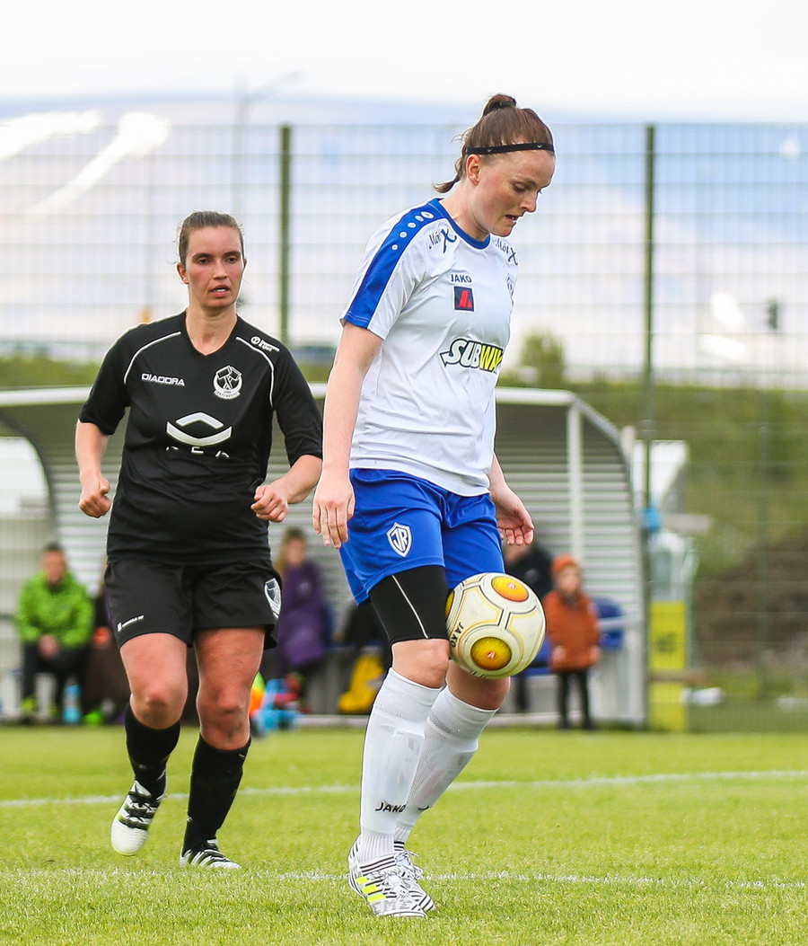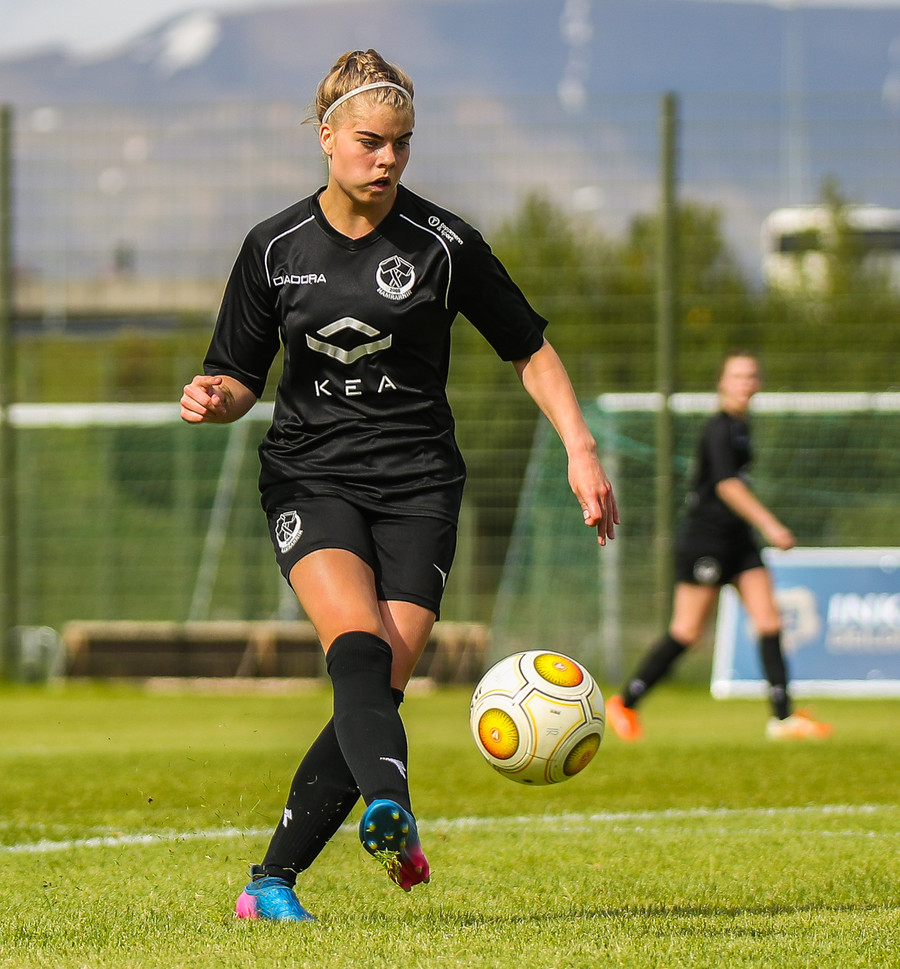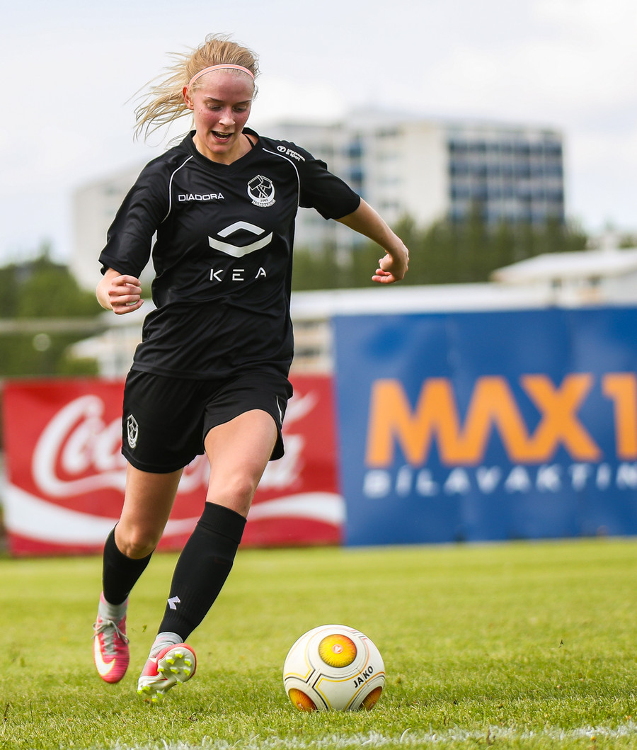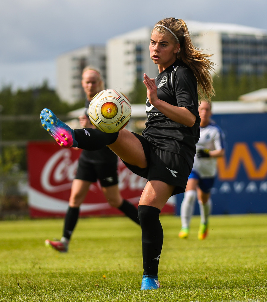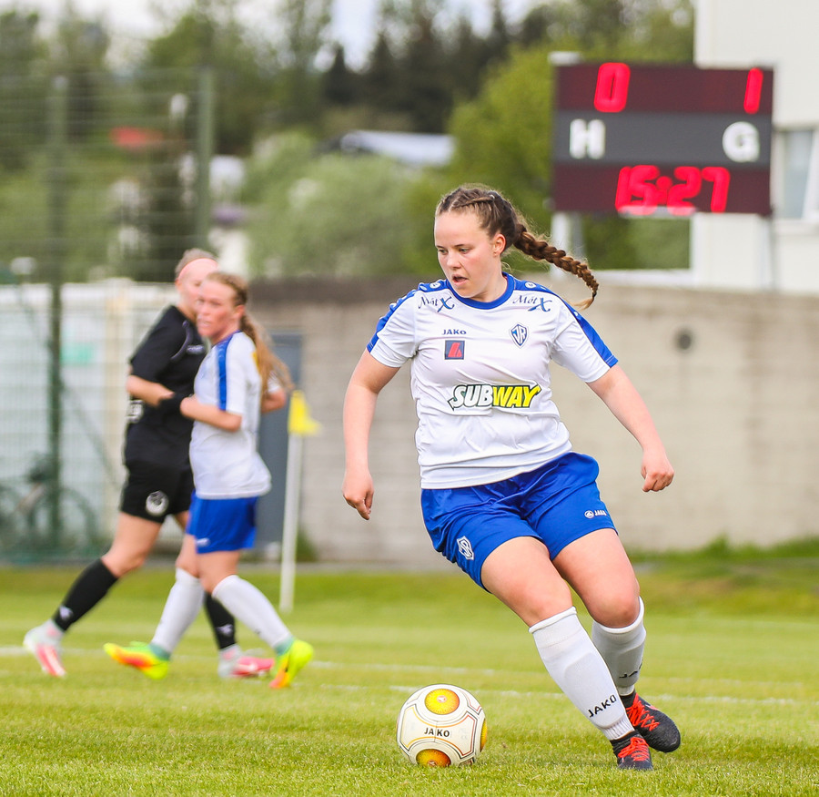 Andrea Magg er í skotstuði í dag og reynir langskot úr aukaspyrnunni. Fínasta tilraun en boltinn yfir.