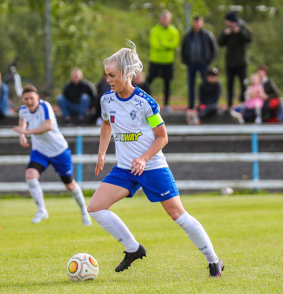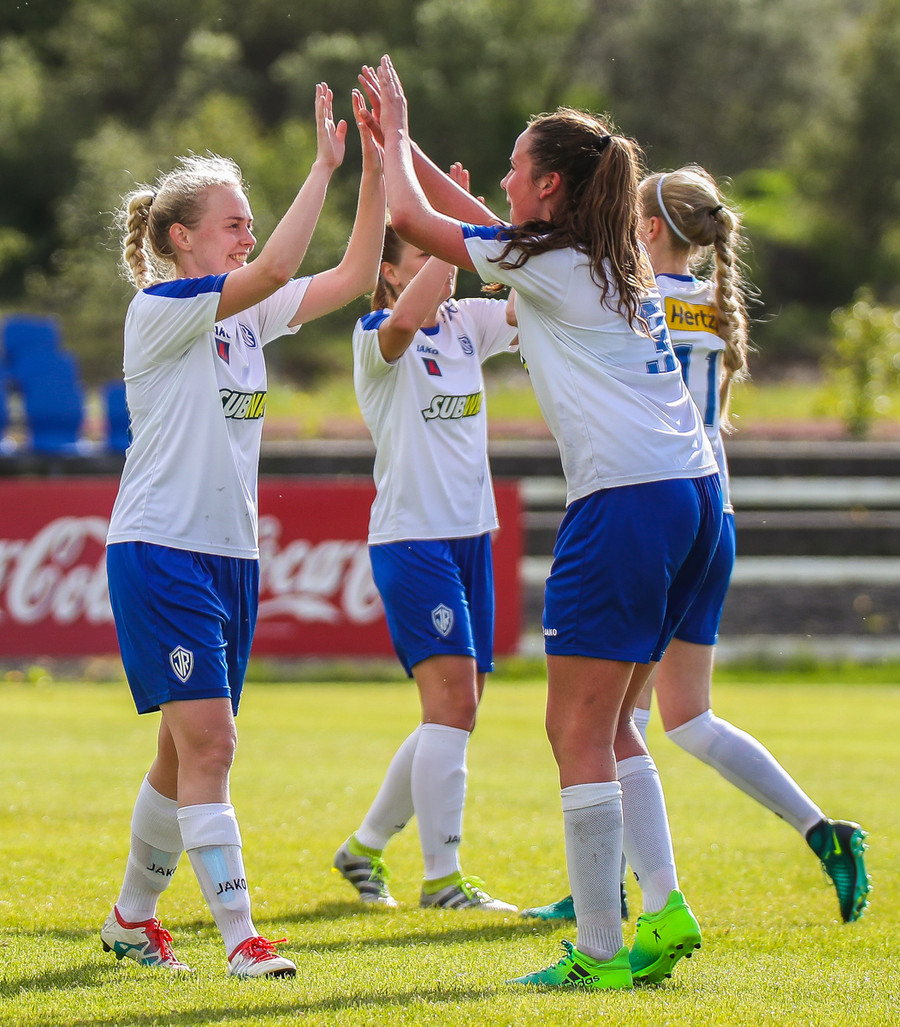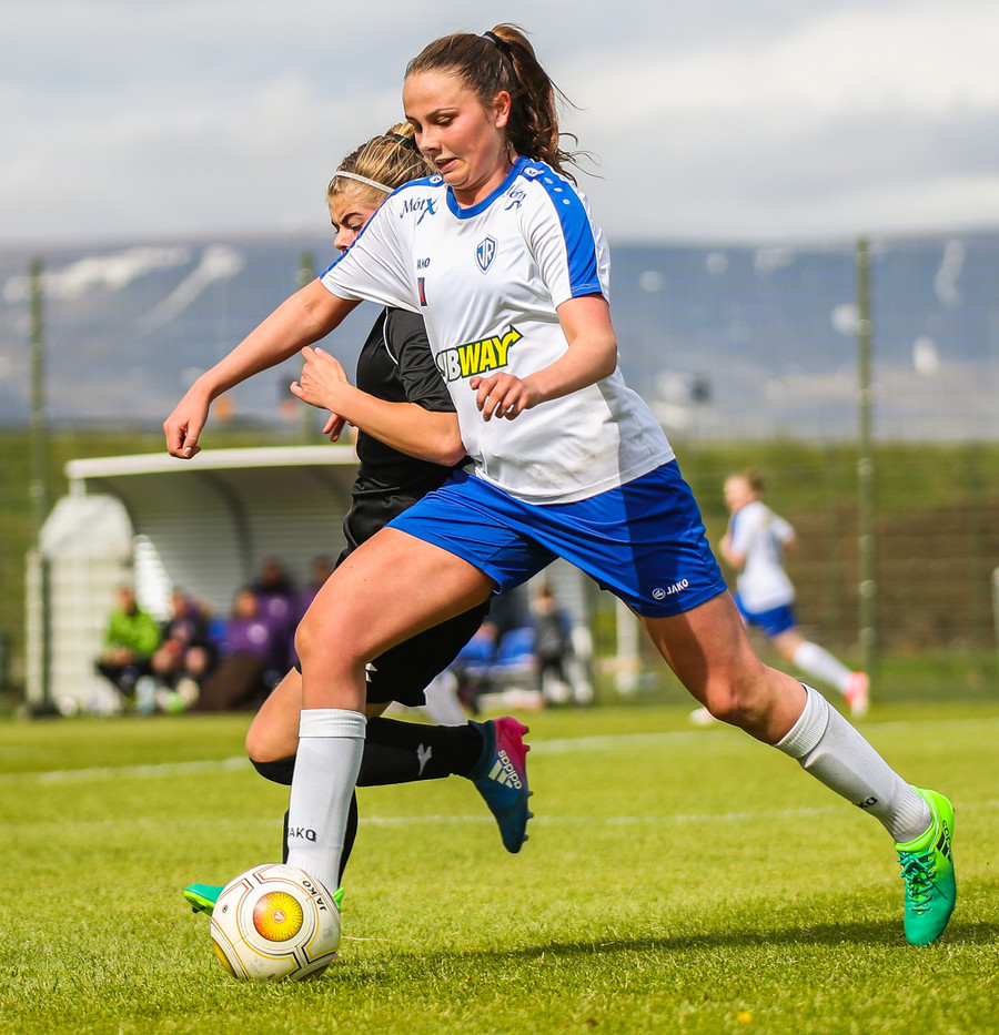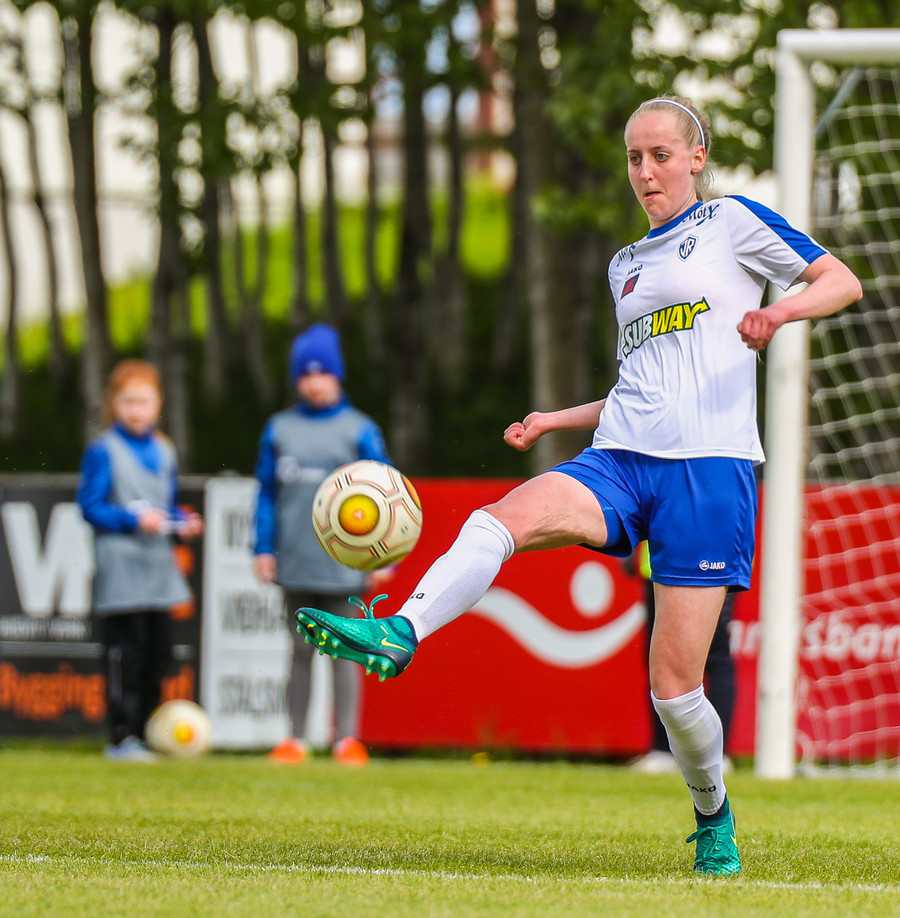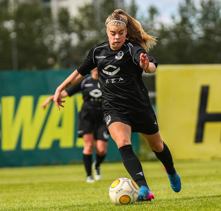 Andrea Magg er í skotstuði í dag og reynir langskot úr aukaspyrnunni. Fínasta tilraun en boltinn yfir.