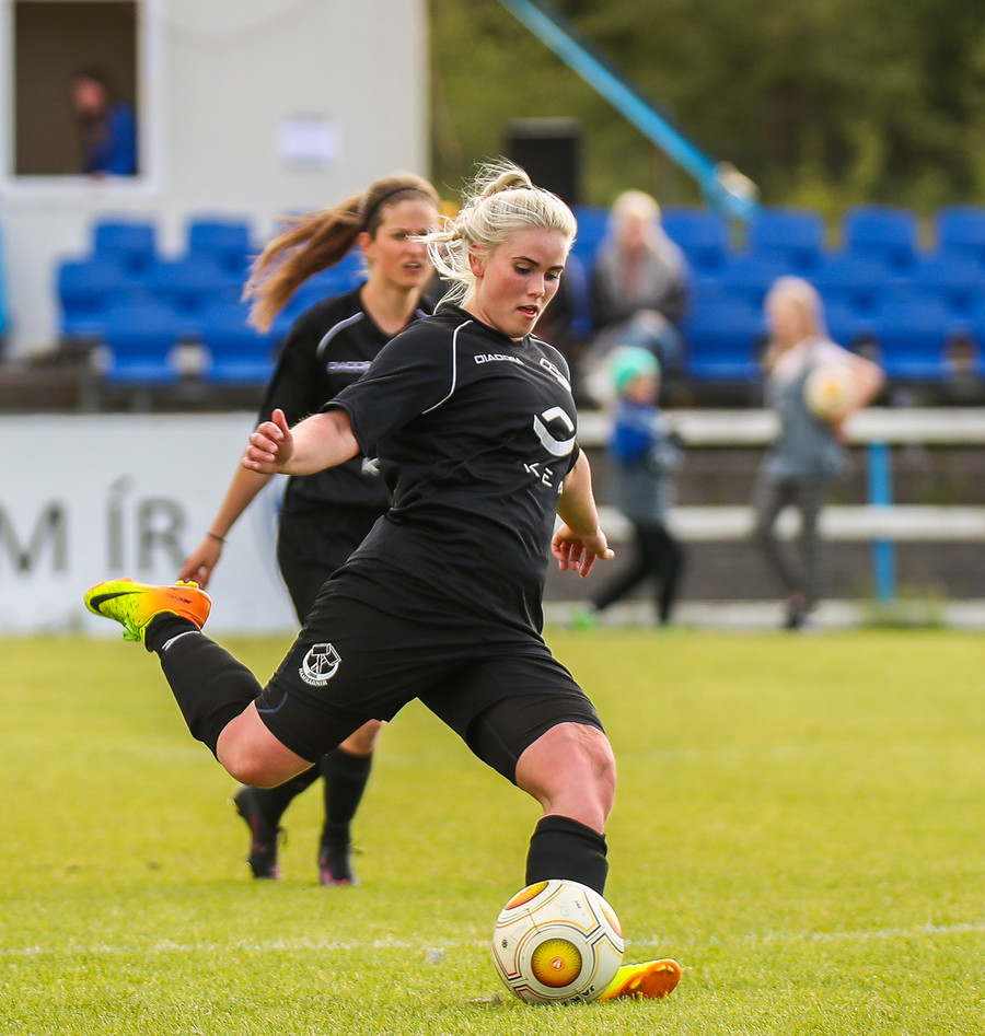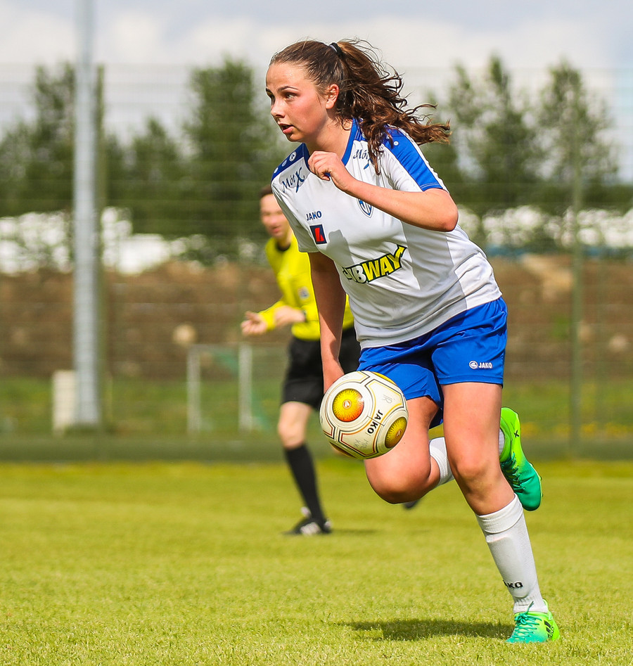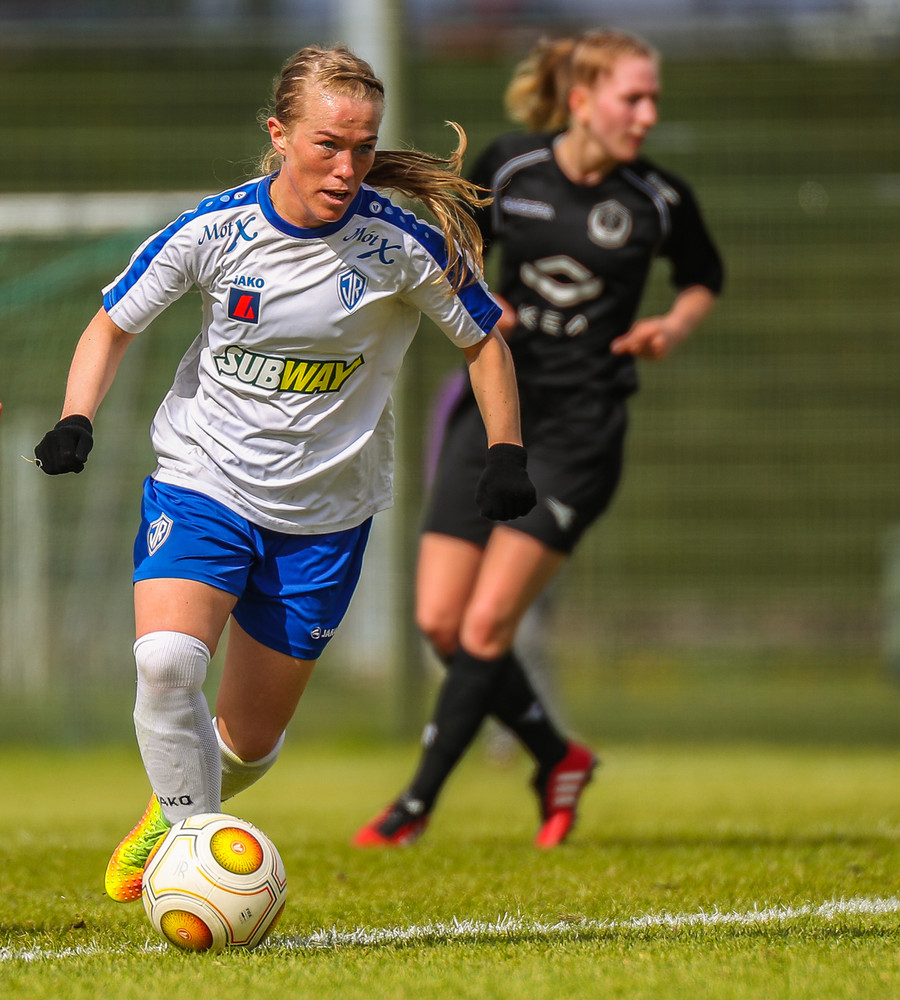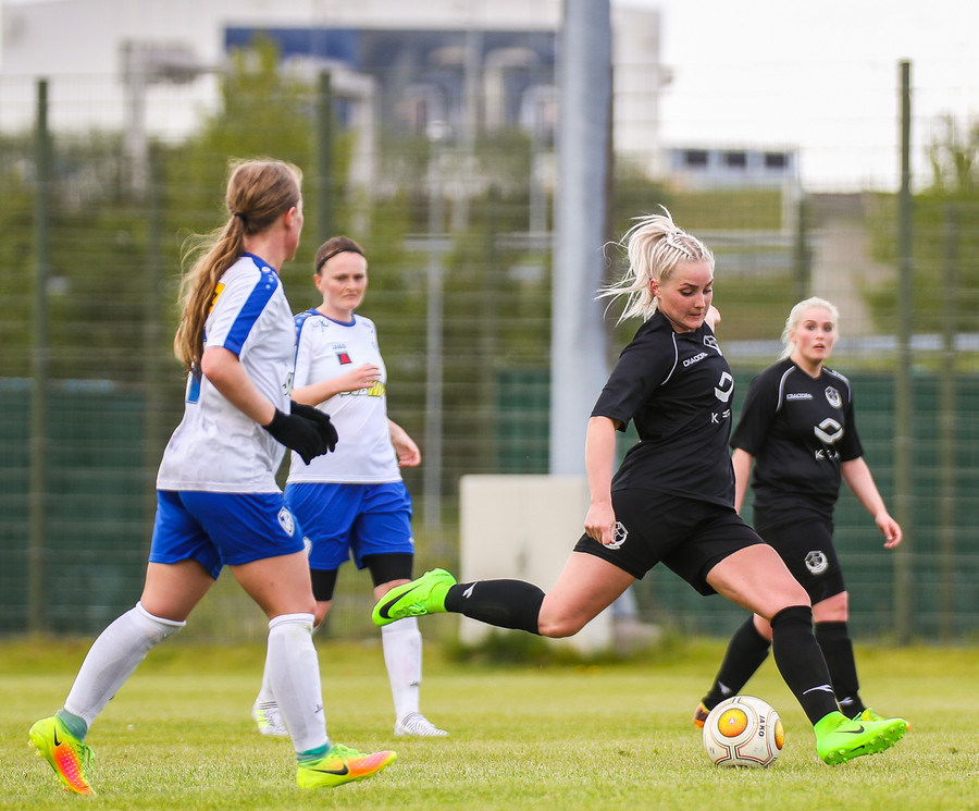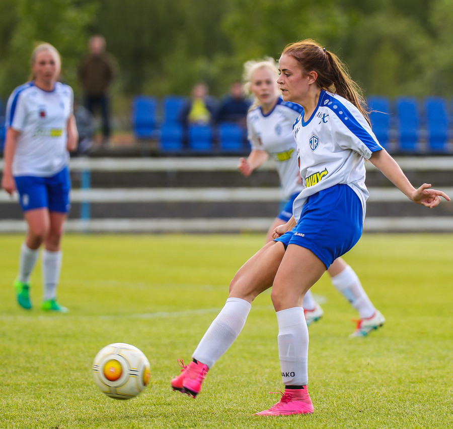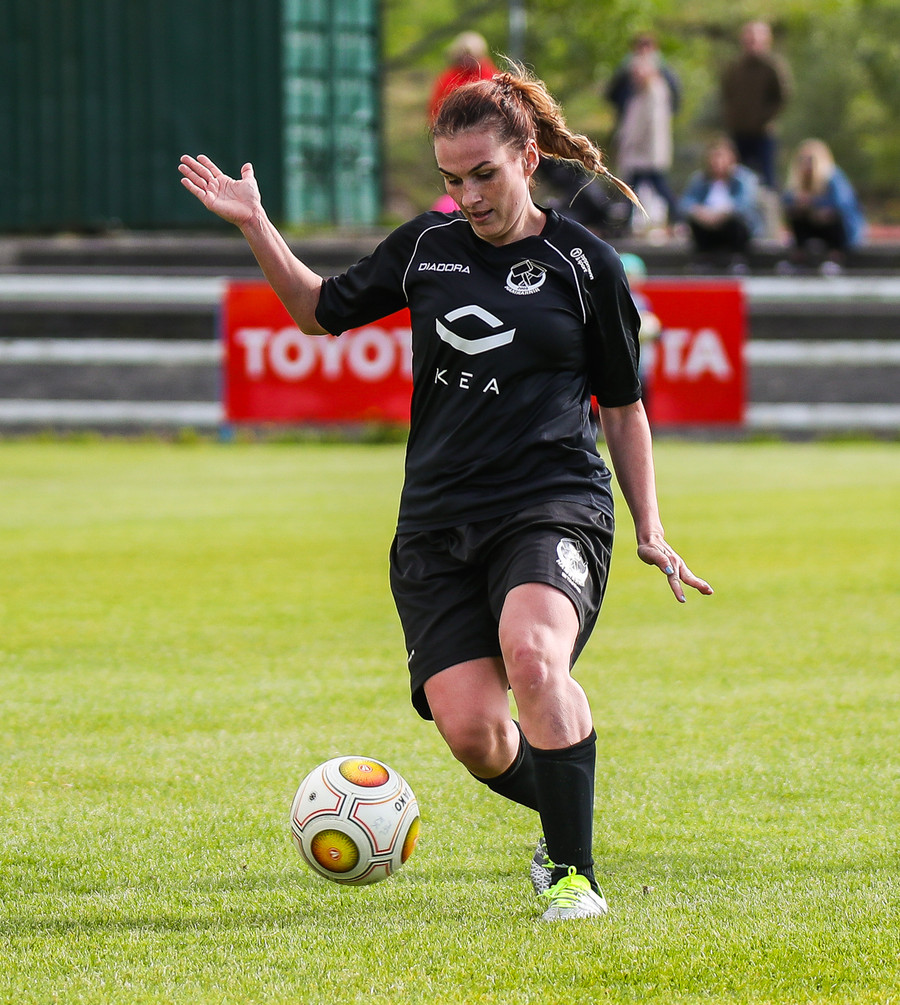 Andrea Magg er í skotstuði í dag og reynir langskot úr aukaspyrnunni. Fínasta tilraun en boltinn yfir.