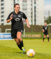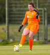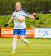 Mónika finnur Bryndísi Maríu í teignum en boltinn í óheppilegri hæð og Bryndís nær ekki skoti. Hamrarnir hreinsa.