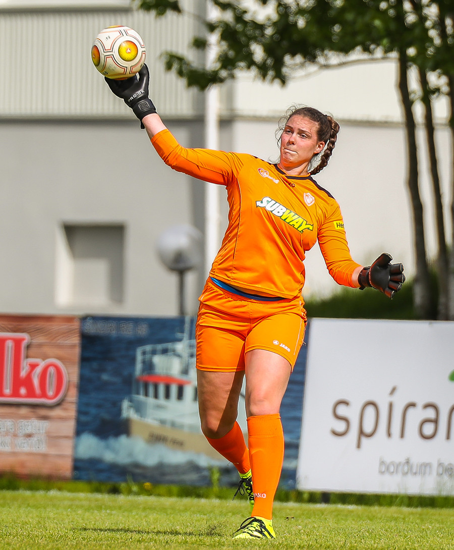 Sandra Dögg var hér nálægt því að sleppa inn fyrir og stuttu síðar átti Aníta Björk ágæta skottilraun utan teigs.