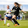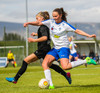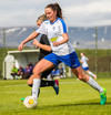 Snædís Ósk klárar vel framhjá Evu Ýr eftir laglega stungusendingu Sigríðar Jónu.