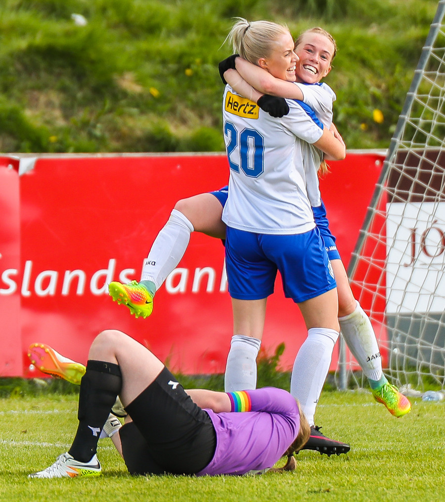 ÍR-ingar eru komnar yfir. Anna Bára stingur boltanum inn á Ástrós. Helena er á undan í boltann en hikar við að hreinsa og Ástrós vinnur af henni boltann. Eftirleikurinn er svo auðveldur enda markið opið.