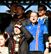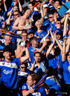 Þá er komið að þjóðsöngvunum. Aldrei þessu vant er stúkan nærri því full á þessum tímapunkti, greinilegt að fyrirmæli lögreglu og KSÍ um að mæta snemma skiluðu sér, allavega að mestu leyti. Kannski hjálpaði FanZone-ið. Allavega, bravó!