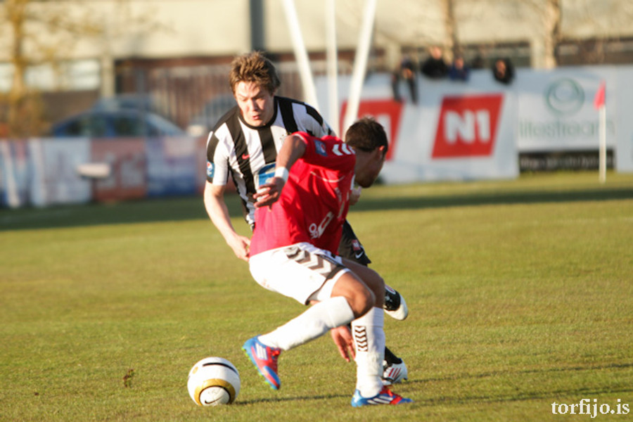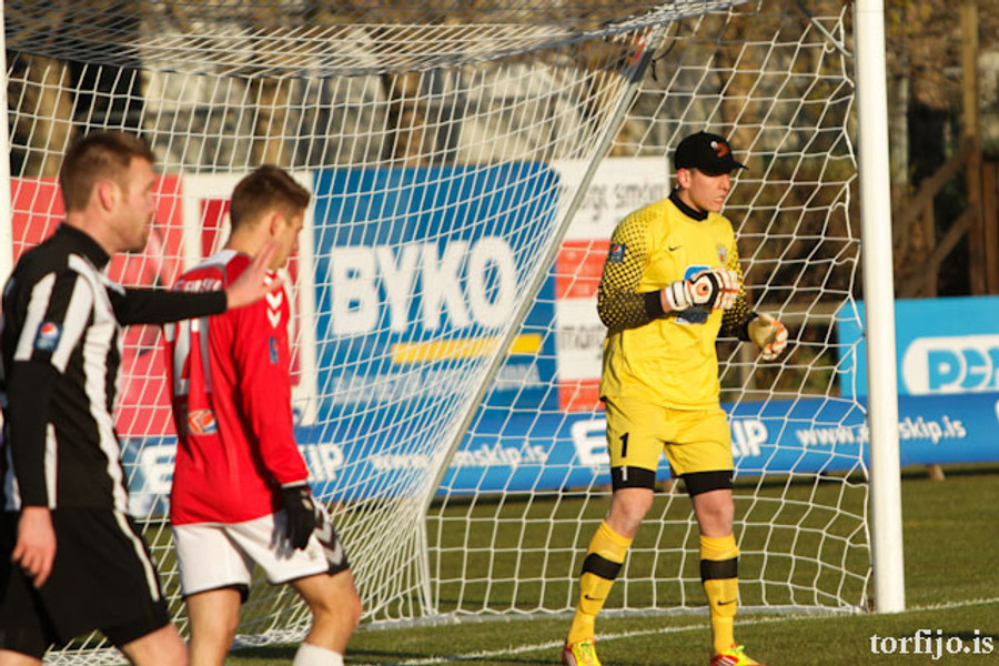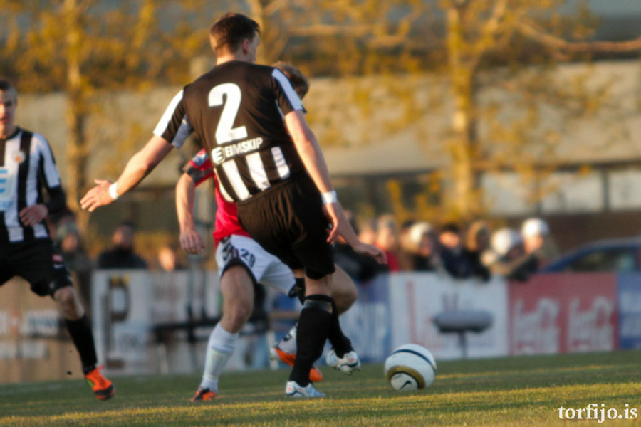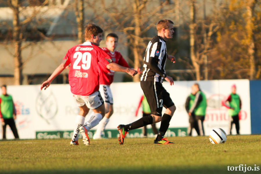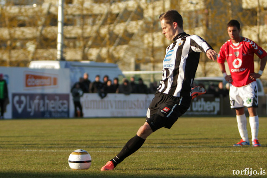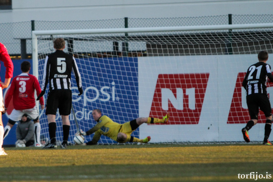 Rangur vítaspyrnudómur. Brynjar Gauti fékk boltann í höndina fyrir utan teig en Magnús Þórisson dæmir víti. Kjartan fer á punktinn en skorar af sama öryggi og áðan!