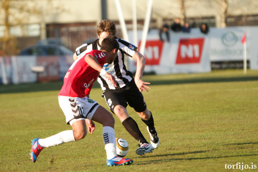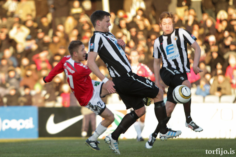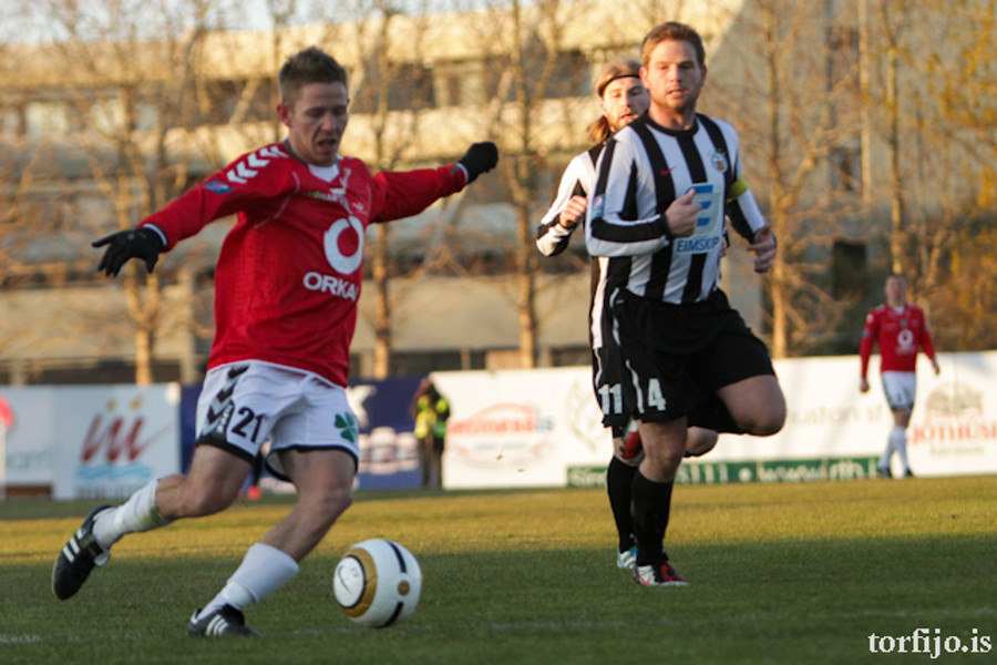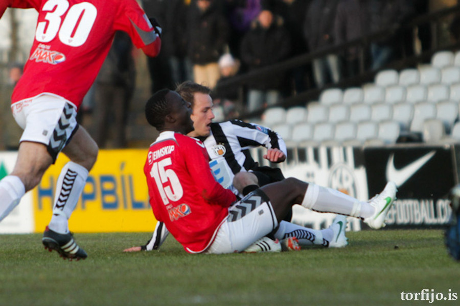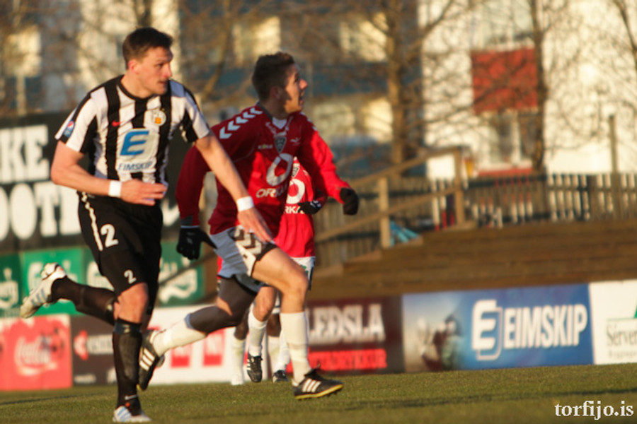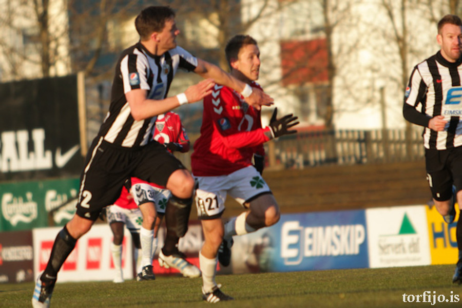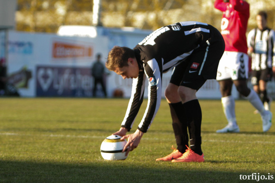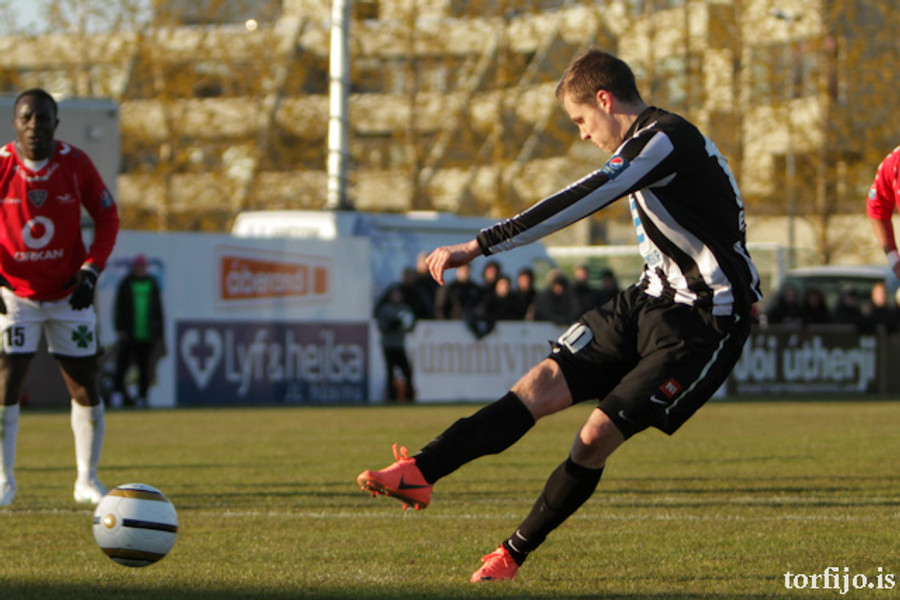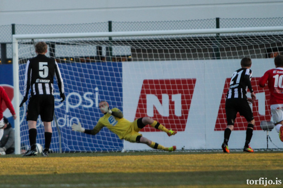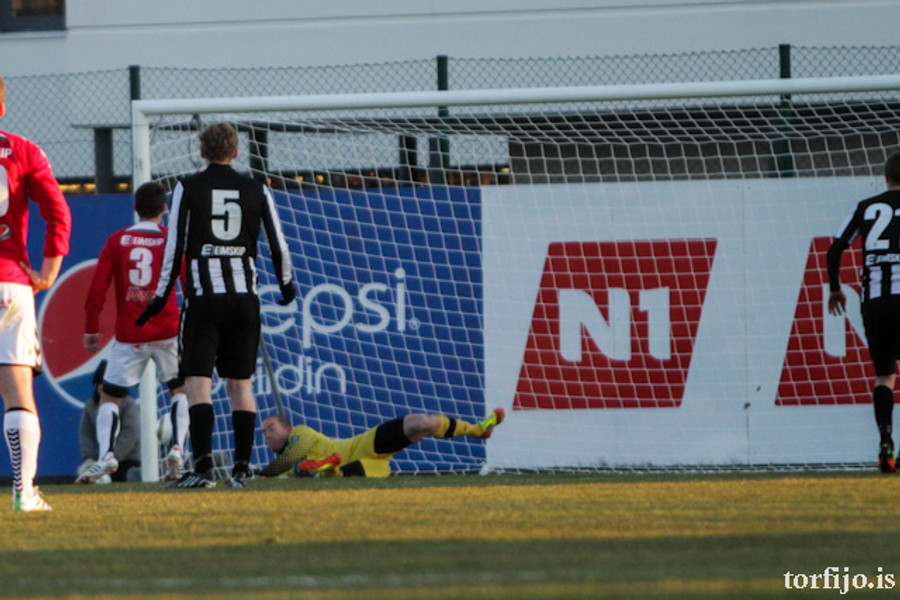 Kjartan kominn með vítaþrennu! Hefur skorað af öryggi úr öllum spyrnunum! Að þessu sinni var það Rasmus Christiansen sem var dæmdur brotlegur á Óskari Erni Haukssyni. Rasmus mótmælti en dómnum ekki haggað.