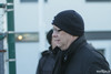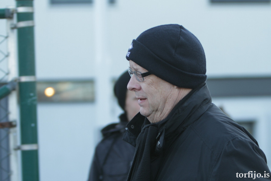 Kóngurinn Bjarni Fel er mættur í fréttamannastúkuna. Hann er vel klæddur enda kalt í kvöld. Er að fara að lýsa í KR-útvarpinu eins og venja er.