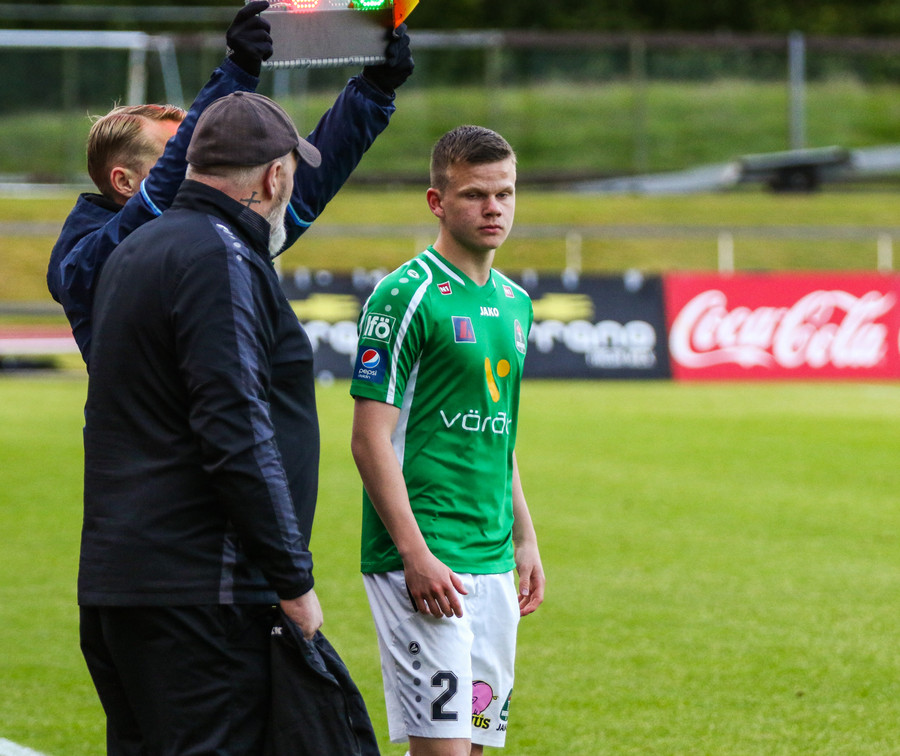 Aron klobbar hér Marinó og inn í teig þar sem Arnþór er aleinn. Veit satt að segja ekki hvort þetta var skot hjá honum eða sending, hvort sem var þá var þetta of fast og fór framhjá!