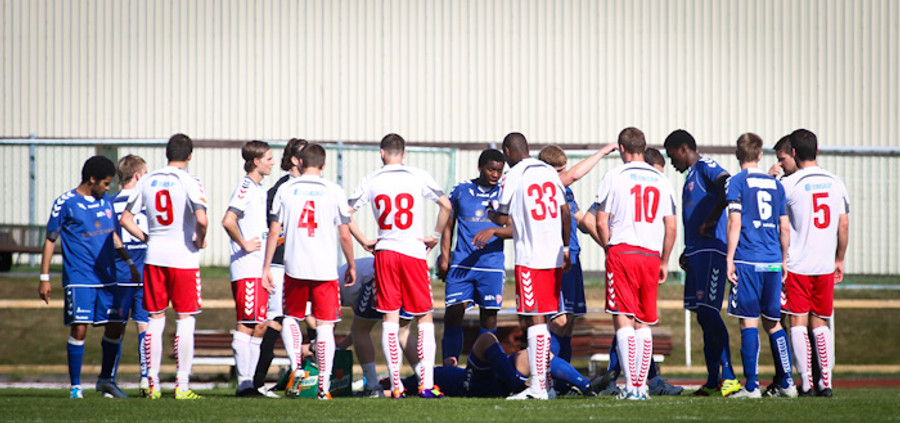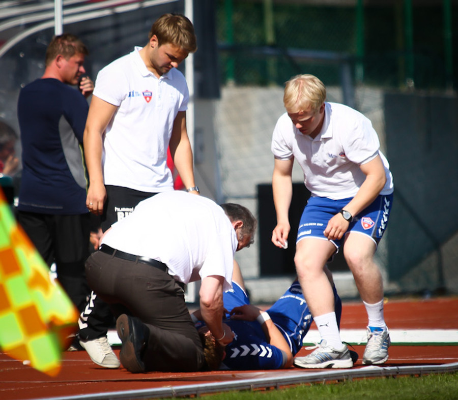 Sigurgeir Sveinn fékk skurð á andlit eftir samstuð. Sjúkraþjálfarinn leit á sárið og fór með hann út að hliðarlínu til að gera að sárinu en þá tók Guðjón Þórðarson til hendinni lét Sigurgeir leggjast og lokaði sárinu sjálfur með þar til gerðum tólum úr sjúkraþjálfaratöskunni. Hann kann þetta allt kallinn.