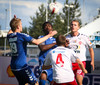 Loic Ondo í dauðafæri eftir hornspyrnu en náði ekki að koma boltanum á rammann. Gestirnir eru að komast meira inn í leikinn eftir að hafa ekki fengið færi í fyrri hálfleik.