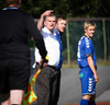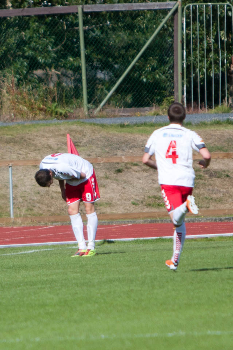 Farid fær áminningu fyrir að fara í fæturna á Sigurgeiri sem hafði boltann. Í kjölfarið var Sigurgeir sendur af velli, þar sem enn blæður úr sári hans. Gestirnir eru því manni færri í bili.
