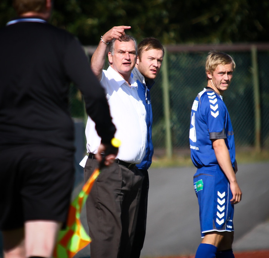 Guðjón gerir hér sína síðustu skiptingu, nú er að sjá hvort Pétur Markan geti sett sitt mark á leikinn.