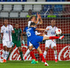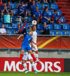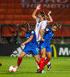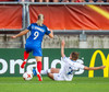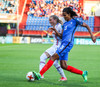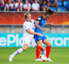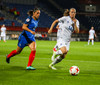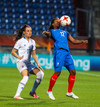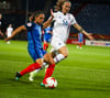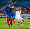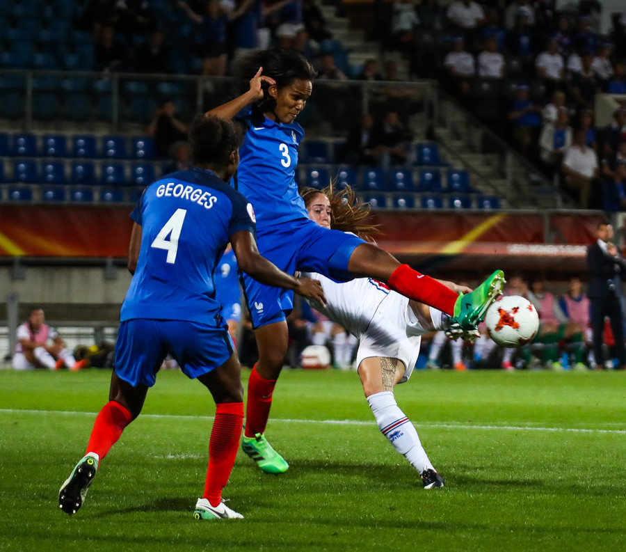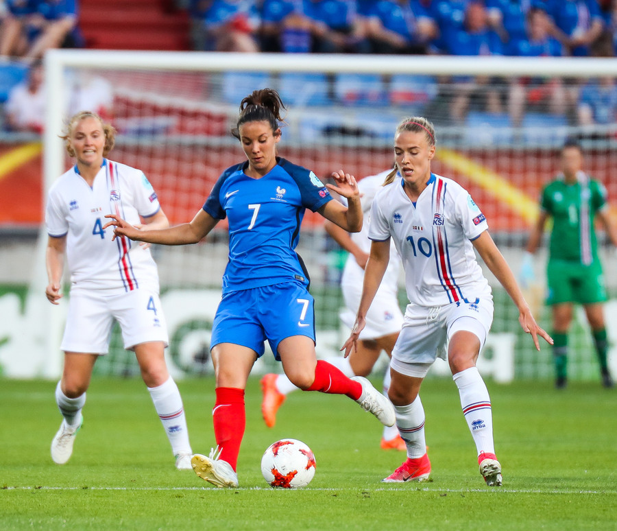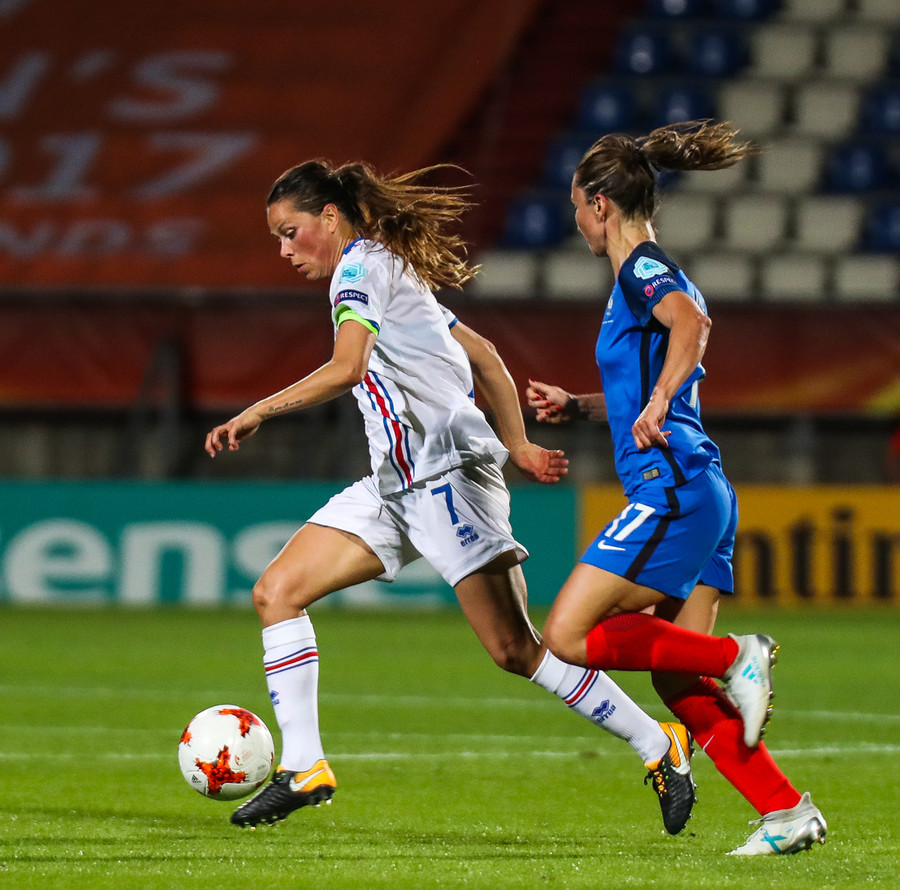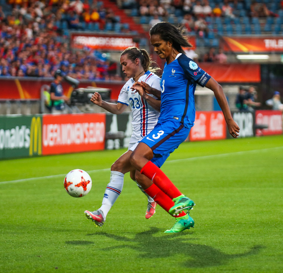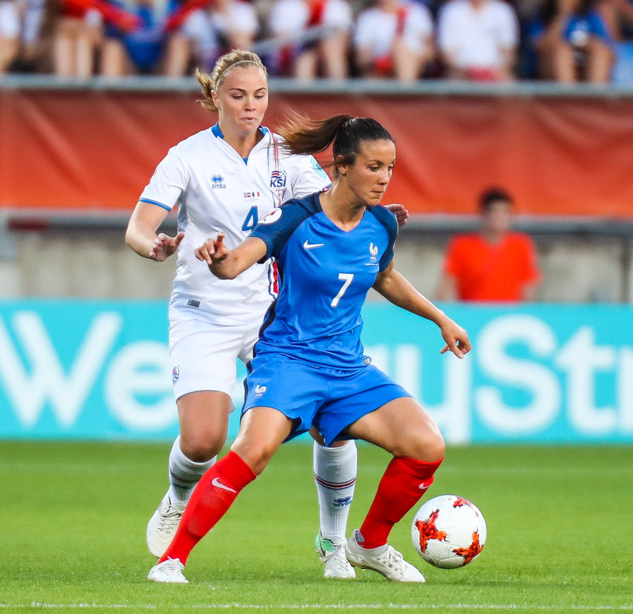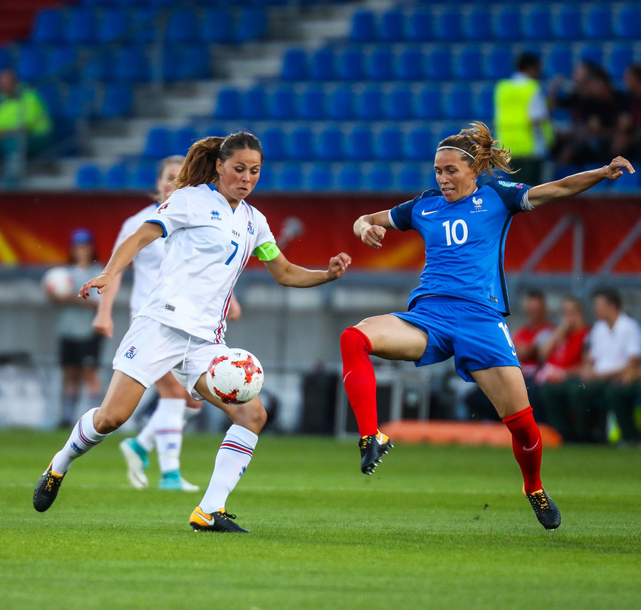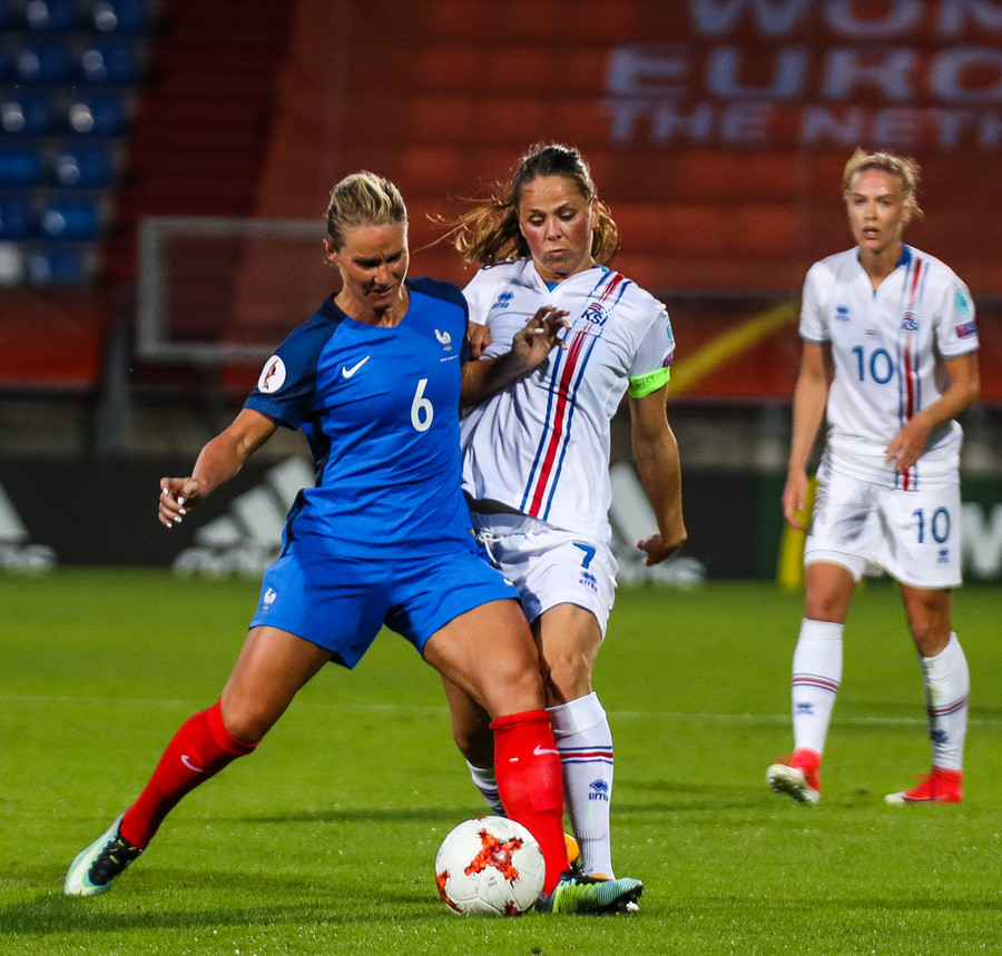 Gunnhildur Yrsa með góða vörn og kemur boltanum í hornspyrnu sem Frakkarnir fá.
