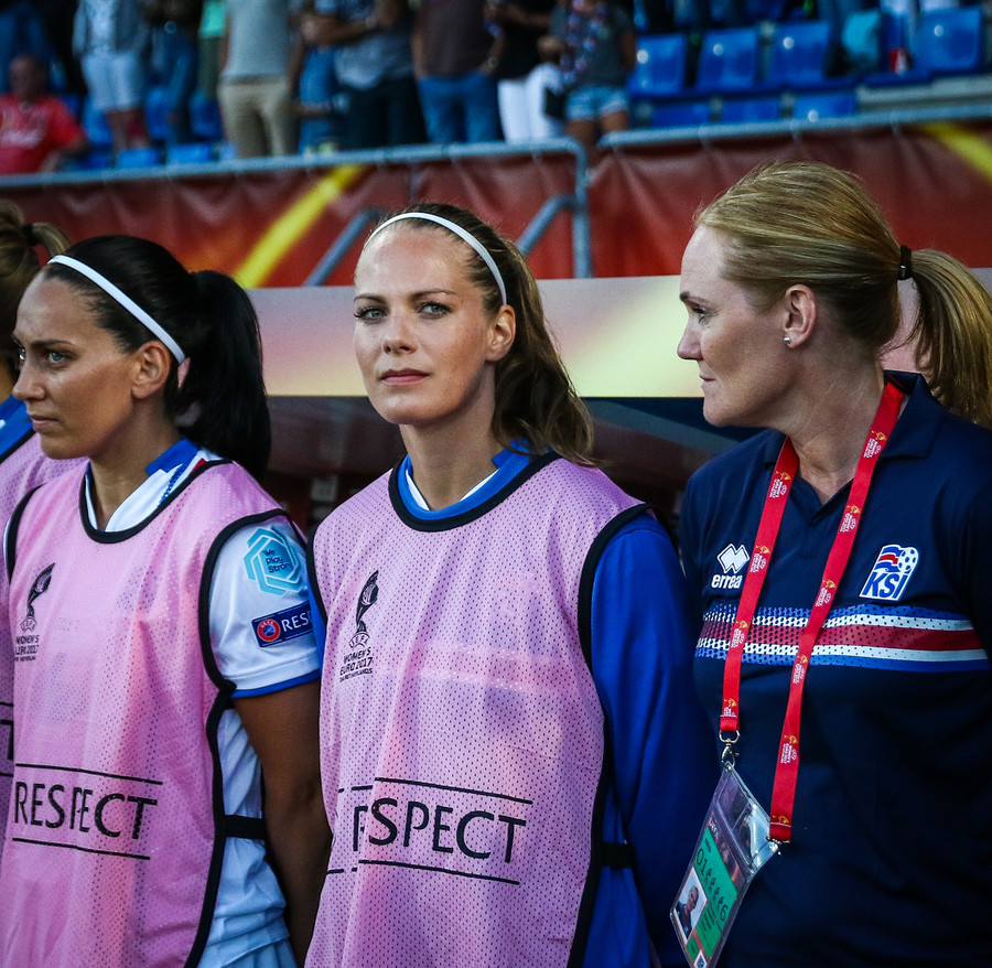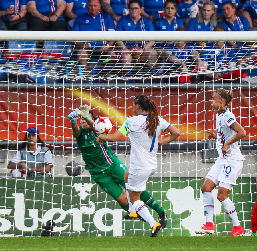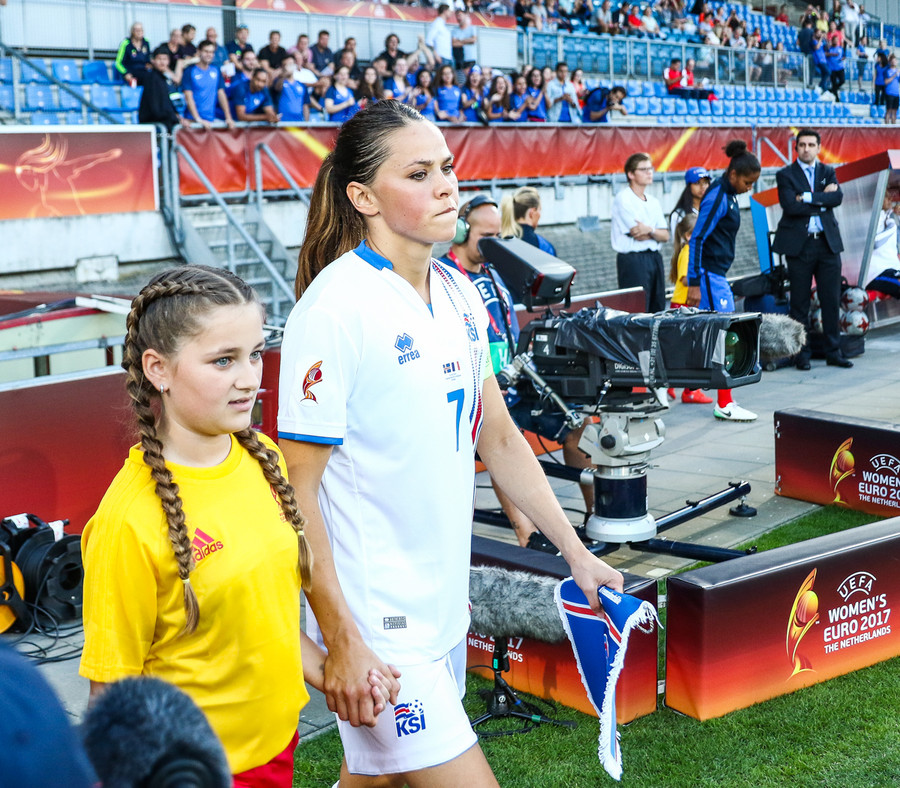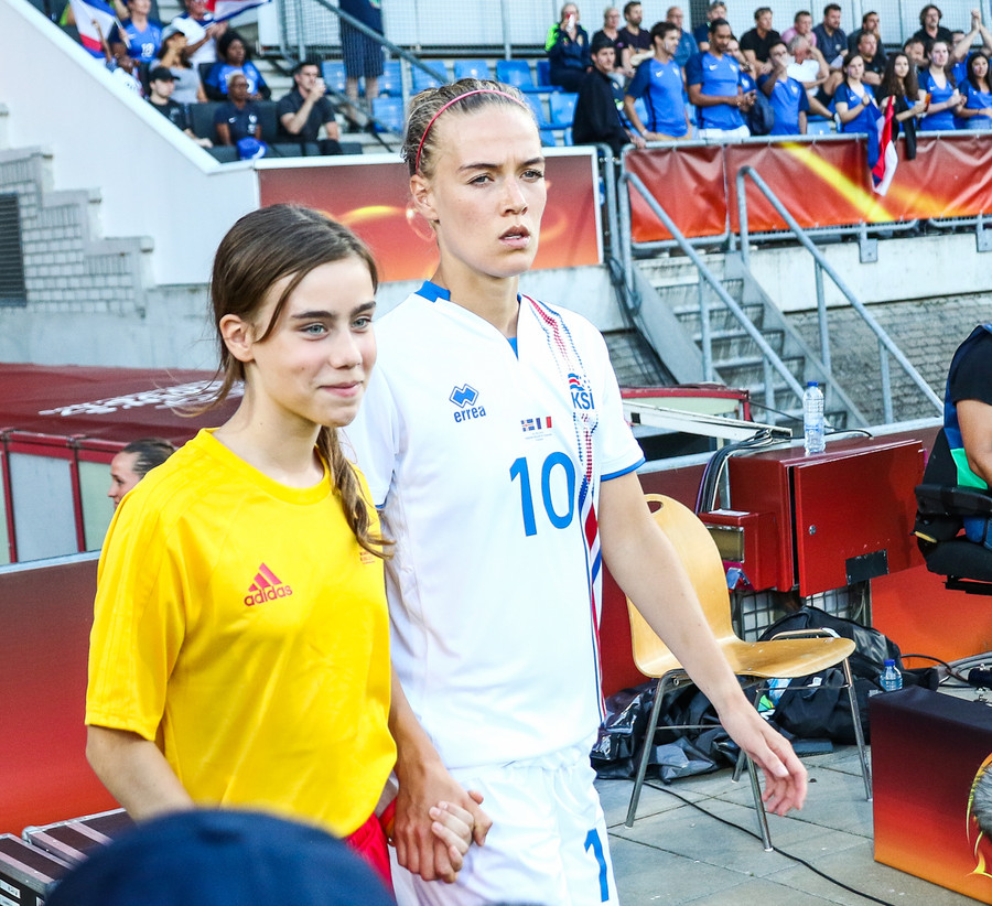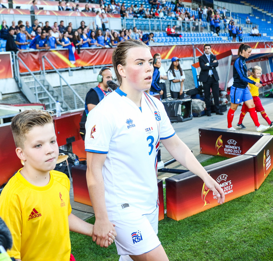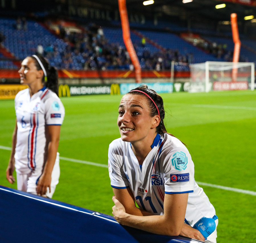 Yngsti leikmaður hópsins, Agla María Albertsdóttir, heldur sæti sínu í byrjunarliðinu og er á hægri kantinum. Þessi 17 ára stelpa verður yngst Íslendinga til að spila á stórmóti í fótbolta.