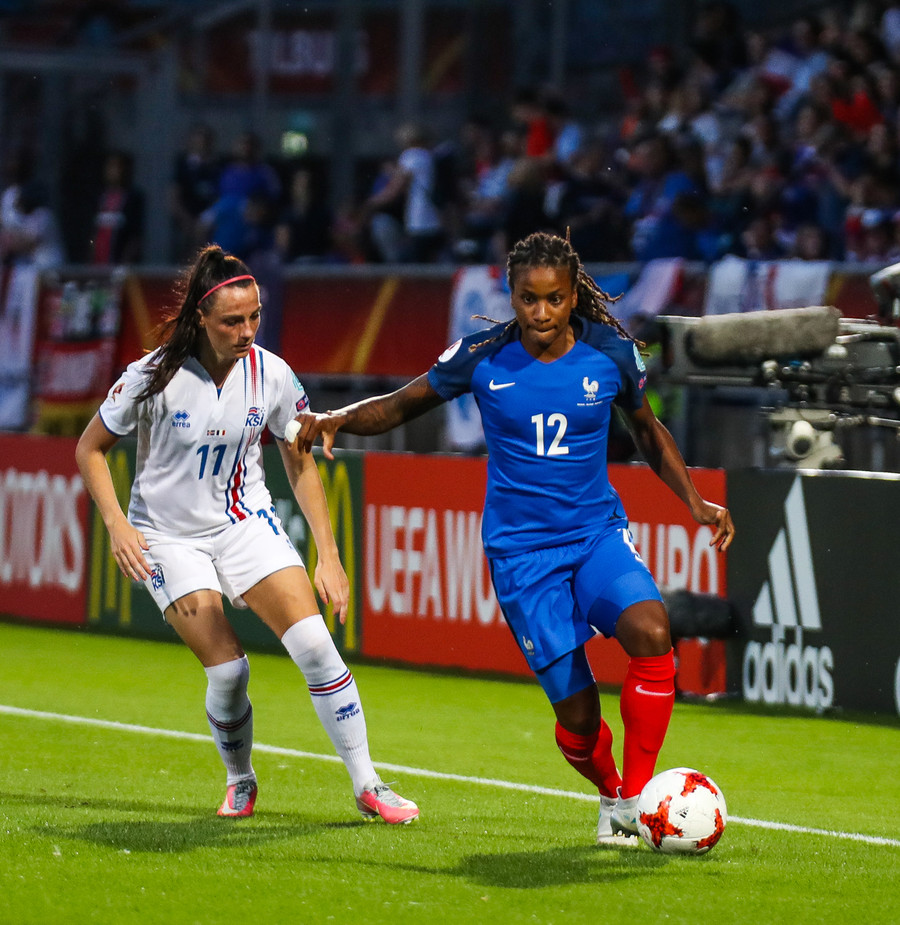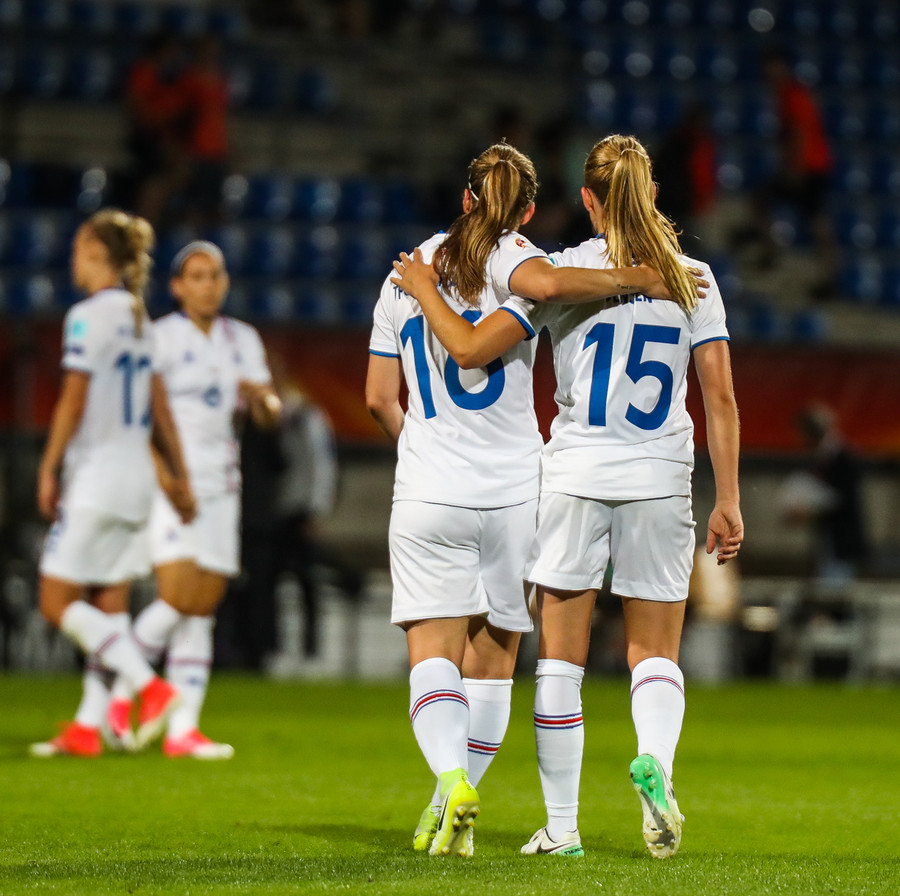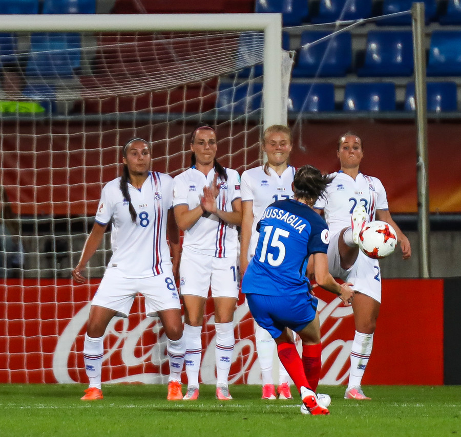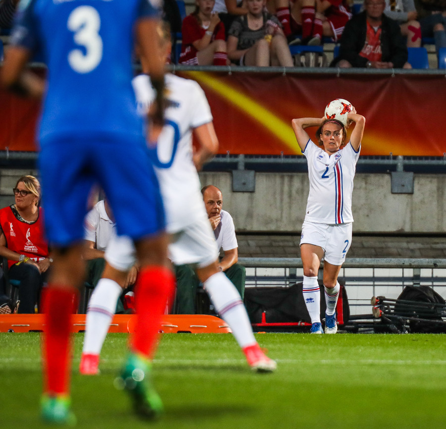Agla María vann Innkast við hægri vænginn og Sif tók langt innkast sem Frakkar náðu að hreinsa frá.