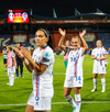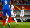 Sara Björk með fyrirgjöf sem markvörður Frakka handsamar. Enn næg orka í íslenska liðinu virðist vera. Stelum þremur stigum takk!!! Er ég of kröfuharður?