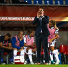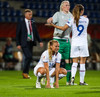 VÁÁÁ!!! ÍSLAND NÁLÆGT ÞVÍ AÐ SKORA! Gunnhildur Yrsa í hörkufæri eftir langt innkast sem Sif tók. Gunnhildur rétt missti af knettinum.