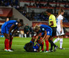 Hlé á leiknum, markvörður Frakka lenti í samstuði við varnarmann Frakka eftir aukaspyrnu. Varnarmaðurinn þarf aðhlynningu.