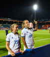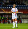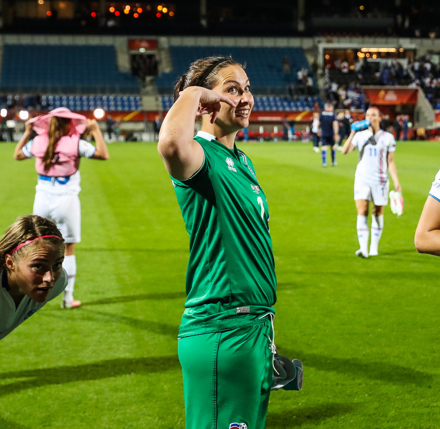 Frakkland meðskot úr aukaspyrnu fyrir utan teig. Nokkuð fast skot en beint í öruggt fang Guðbjargar.