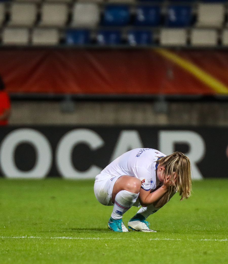 Dagný í FLOTTU FÆRI eftir hornspyrnu Hallberu! Skallaði rétt framhjá. Besta tilraun Íslands hingað til kom úr okkar fyrsta horni.