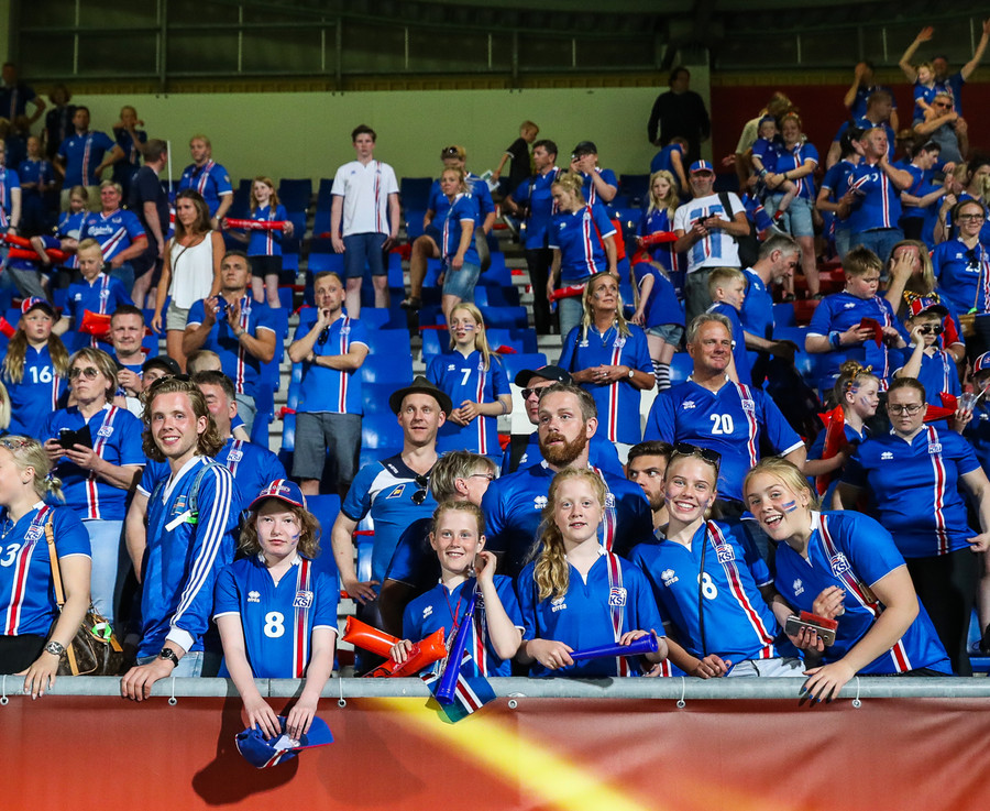 Samkvæmt okkar upplýsingum er búið að selja um 5 þúsund miða á leikinn í kvöld, þar af eru tæplega 3 þúsund Íslendingar. Það verður því aðeins 1/3 af leikvanginum setinn.