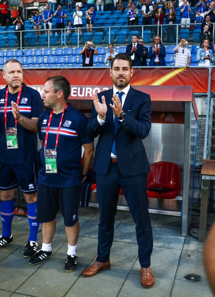 Hingað til ansi gott. Íslenska liðið lokar vel á það franska. Freysi er augljóslega sáttur við varnarvinnuna, sést vel þar sem hann klappar í boðvangnum.