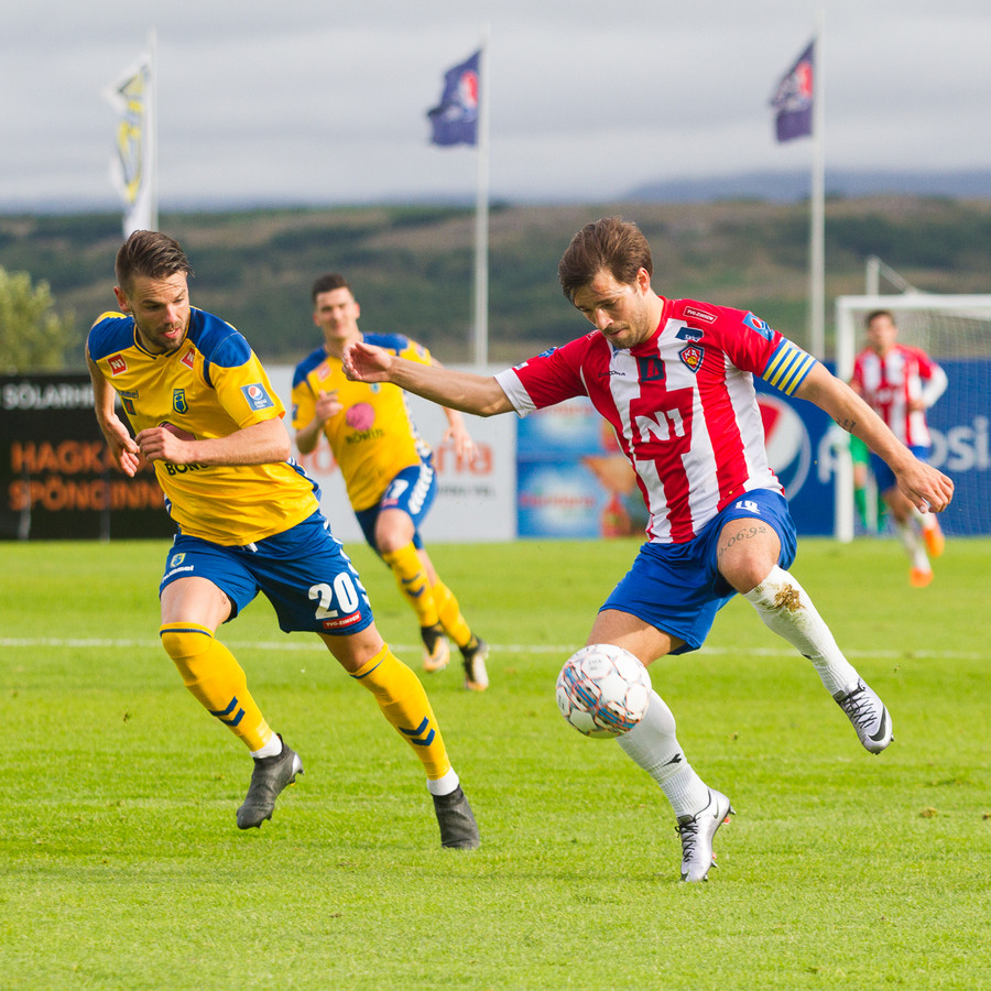ROSALEGT FÆRI! Steinþór Freyr fær hörkufæri. Boltinn dettur út á Steinþór Frey sem var einn og óvaldaður en hitti ekki rammann. Fyrsta alvöru færi leiksins.