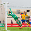 VÁÁÁ!!! Ægir Jarl nær að teyga sig í boltann í baráttu í teignum og boltinn stefnir í markið en Rajko ver meistaralega í horn!