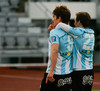 Selfyssingar spila í argentínubúningunum á móti Fram??? Hvítt og blátt á móti bláu og smá hvítu. Afhverju ekki bara fjólublátt? #fotbolti