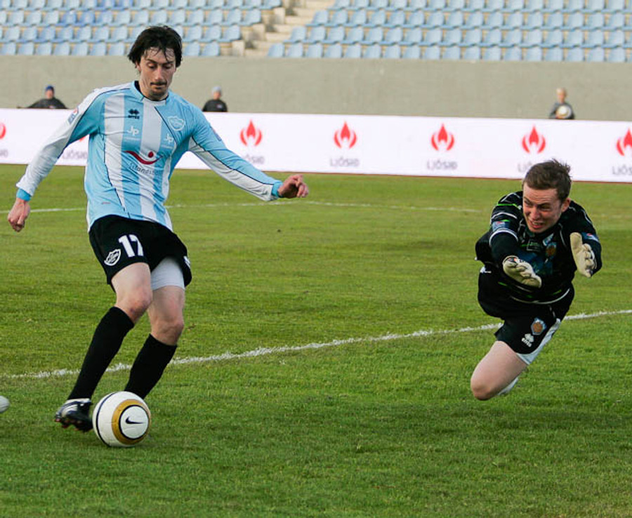 Endre Brenne tók góða aukaspyrnu frá miðjunni og Ásgeir Gunnar elti ekki Viðar Örn sem var í dauðafæri, en mokaði boltanum framhjá.