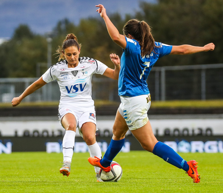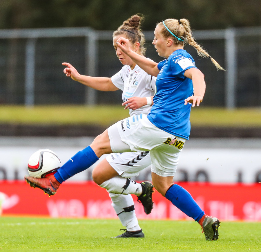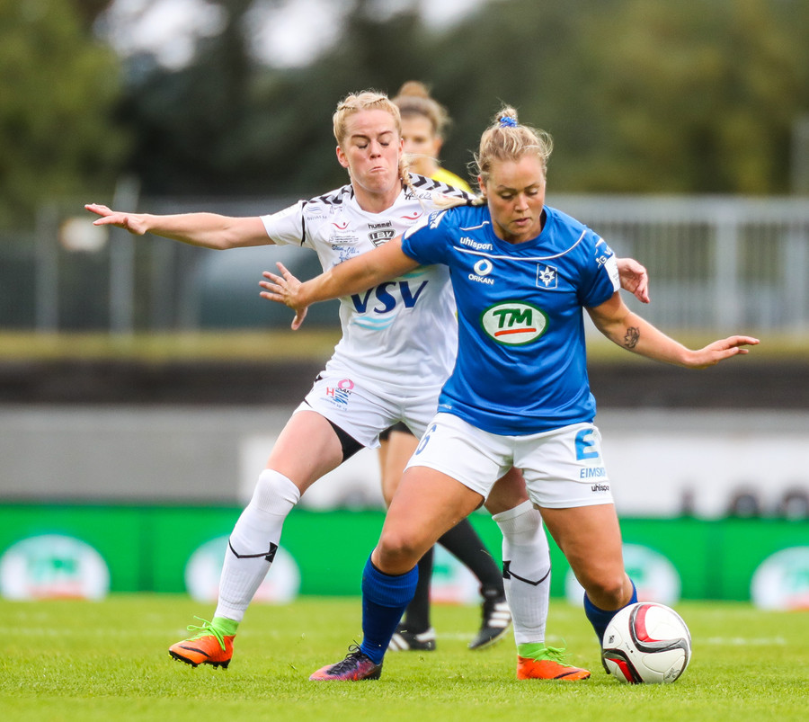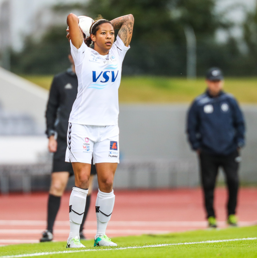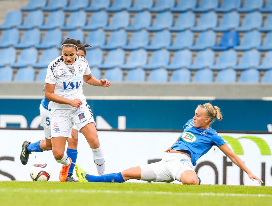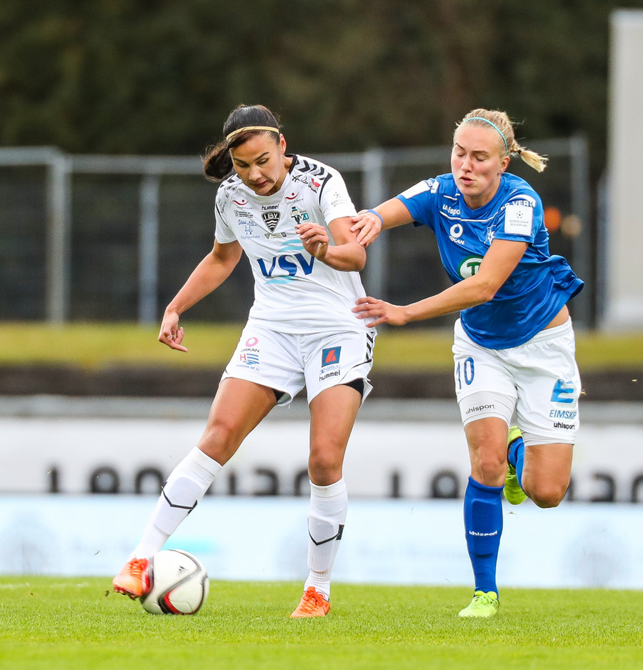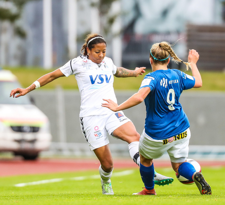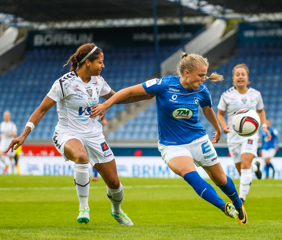 Ana Cate brýtur harkalega á Sísí inná miðsvæðinu eftir að hafa átt slaka sendingu fram völlinn.