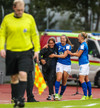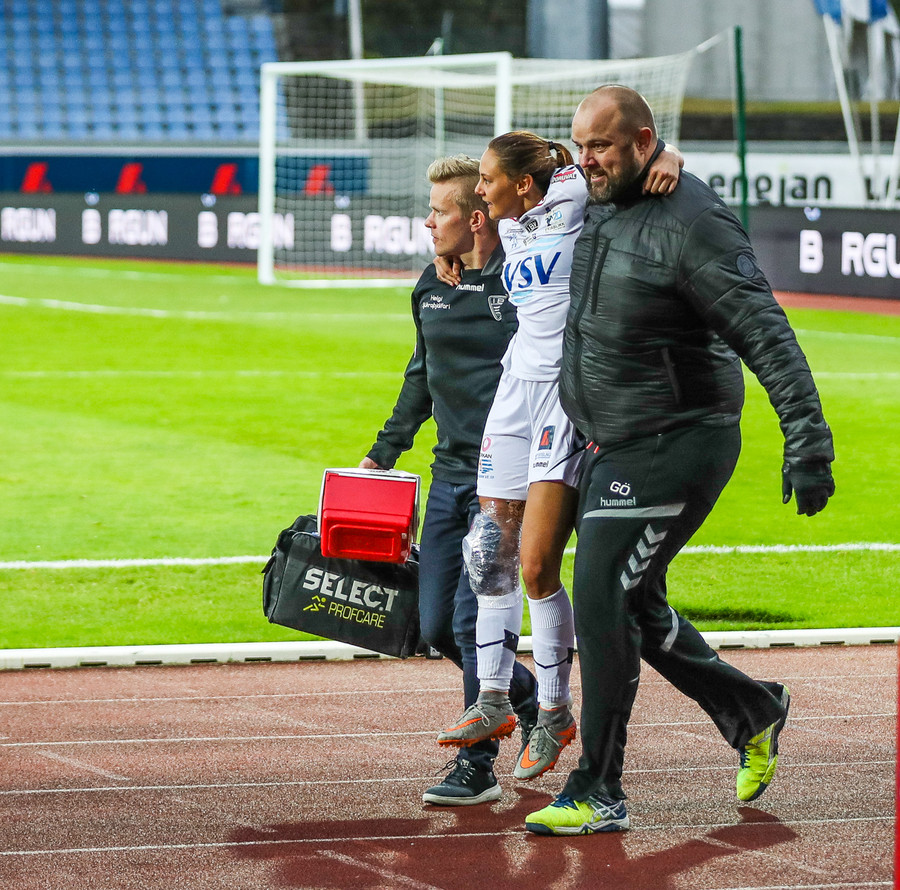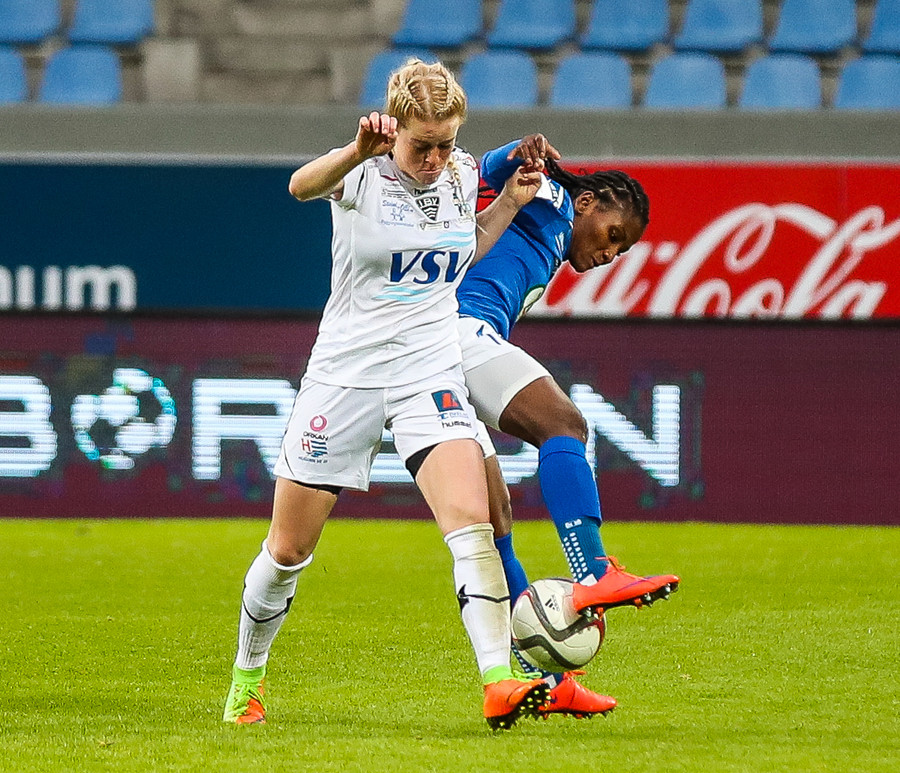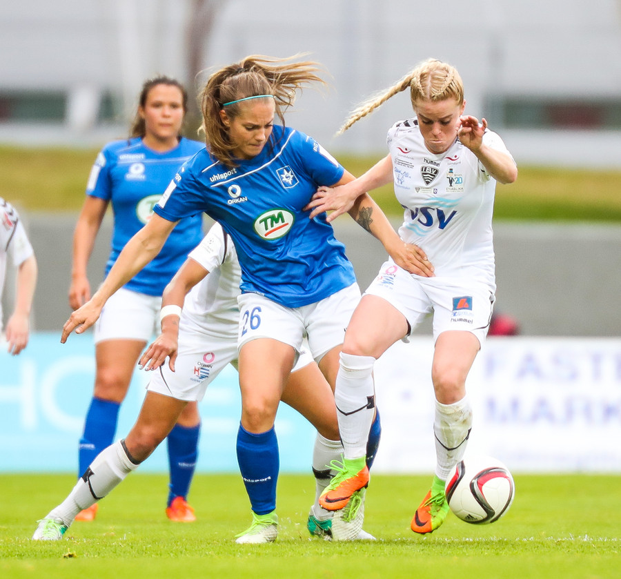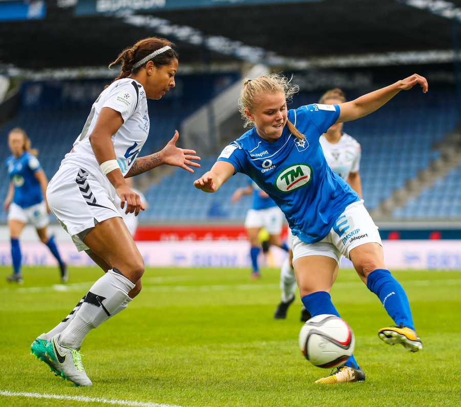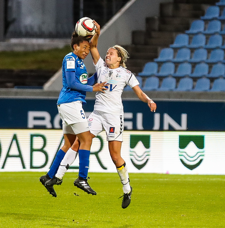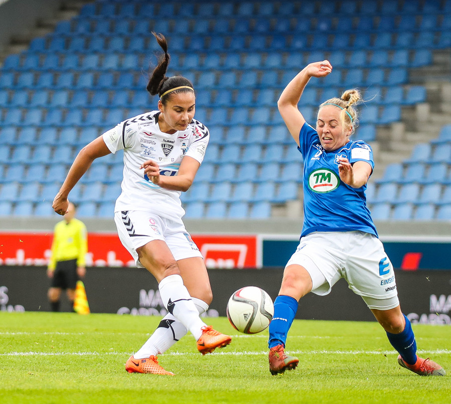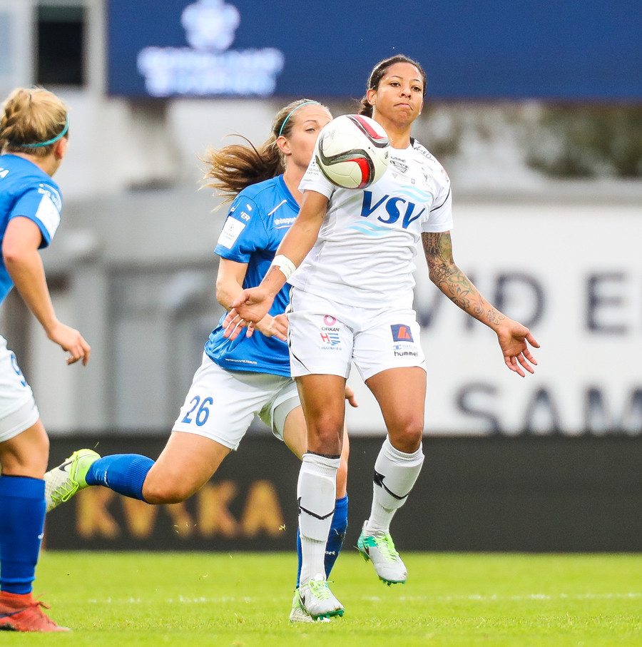 Ana Cate brýtur harkalega á Sísí inná miðsvæðinu eftir að hafa átt slaka sendingu fram völlinn.