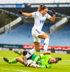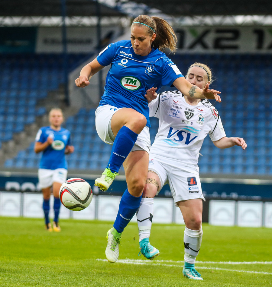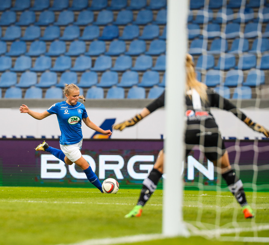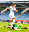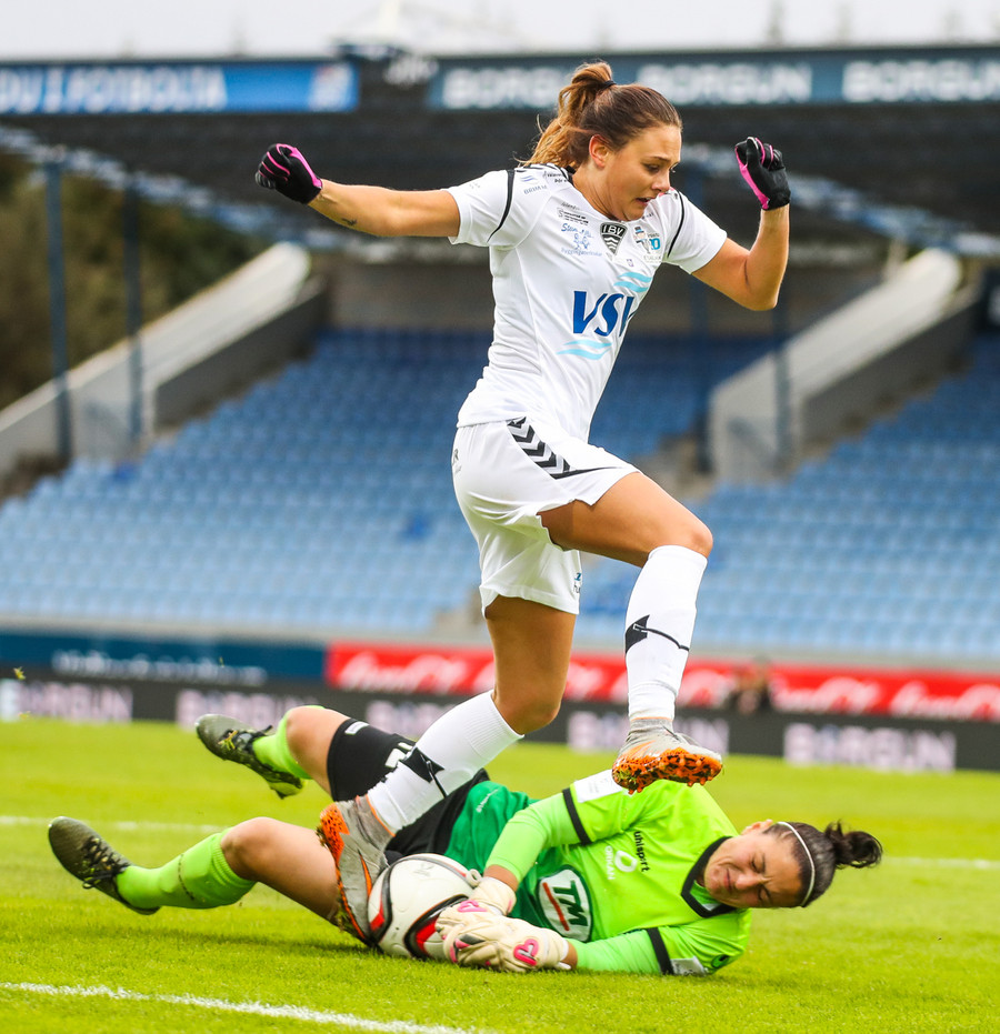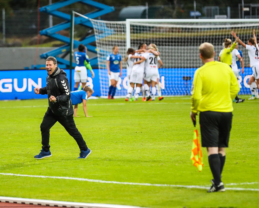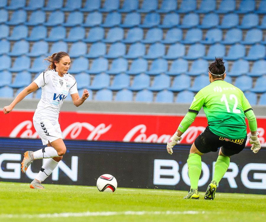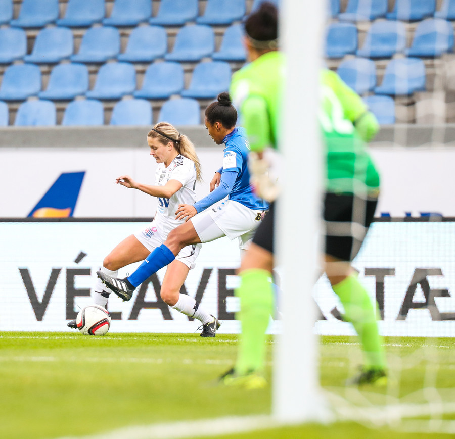 Kristrún er undir pressu frá Katie, á mjög slaka sendingu til baka. Gemma illa staðsett, komin langt út. Cloé vinnur boltann, rekur hann í átt að endamörkum en klárar þetta frábærlega eftir að hafa komið sér í nokkuð þrönga stöðu! Hún setur hann yfir Kristrúnu sem var búin að reyna að koma sér til baka!